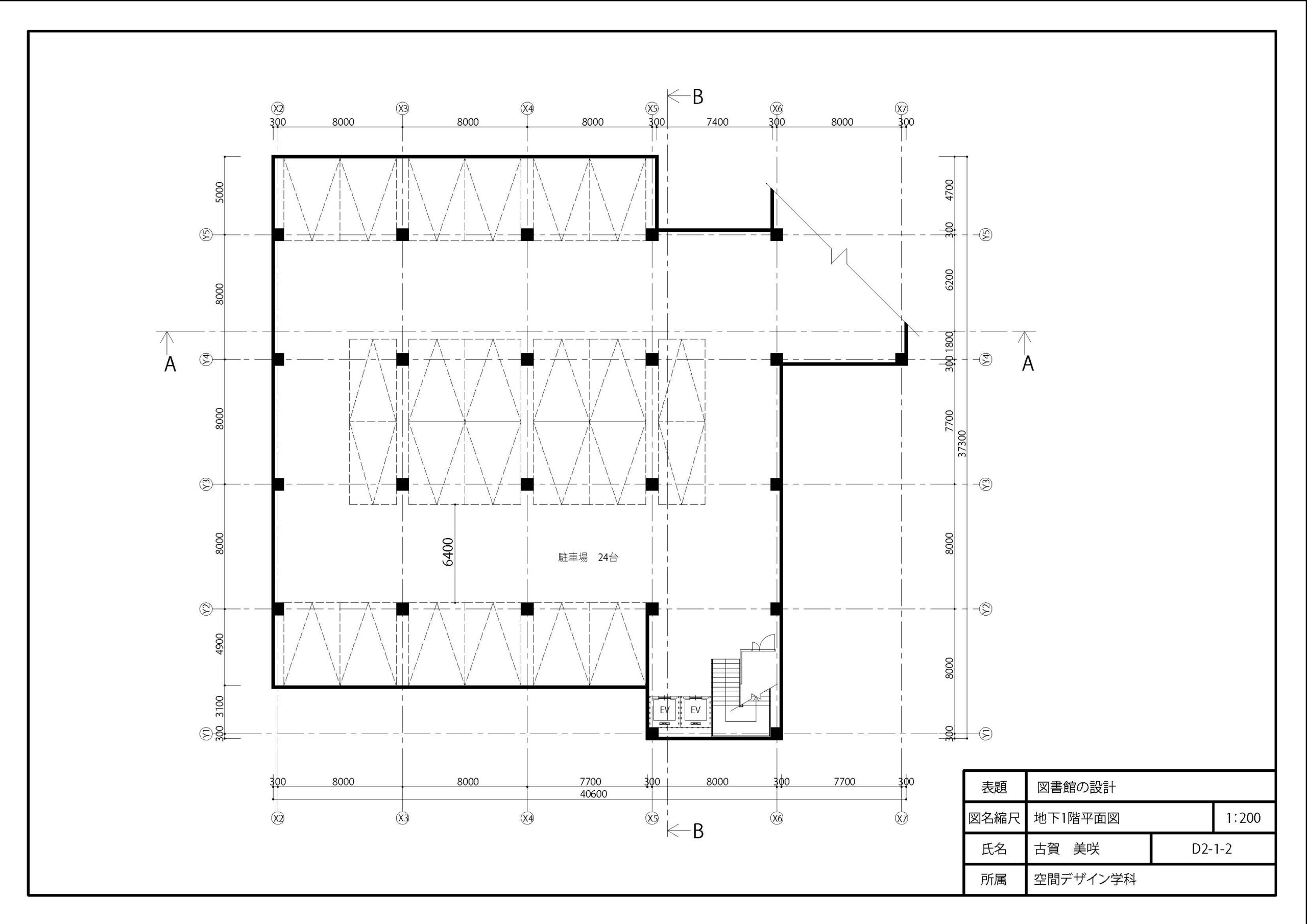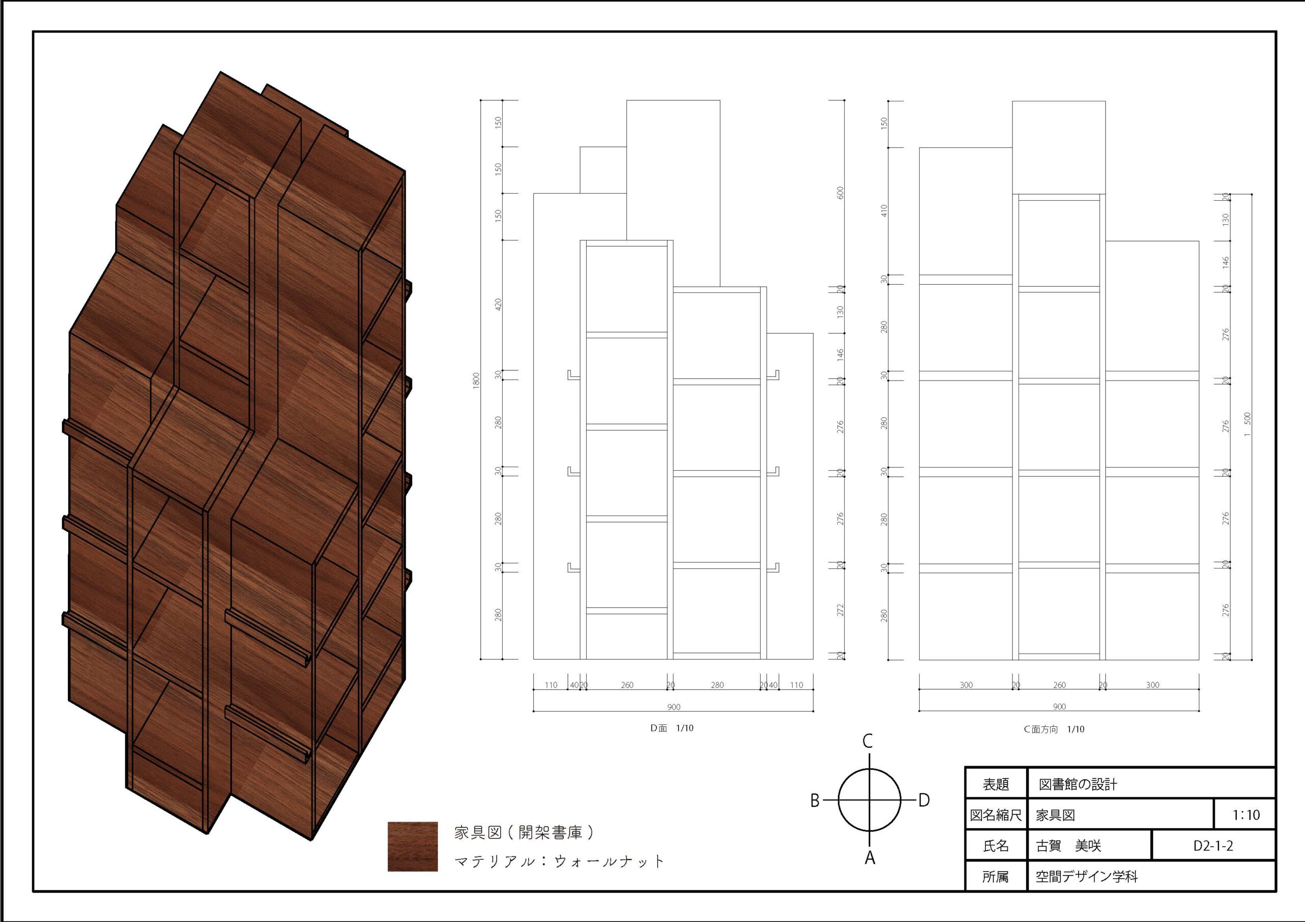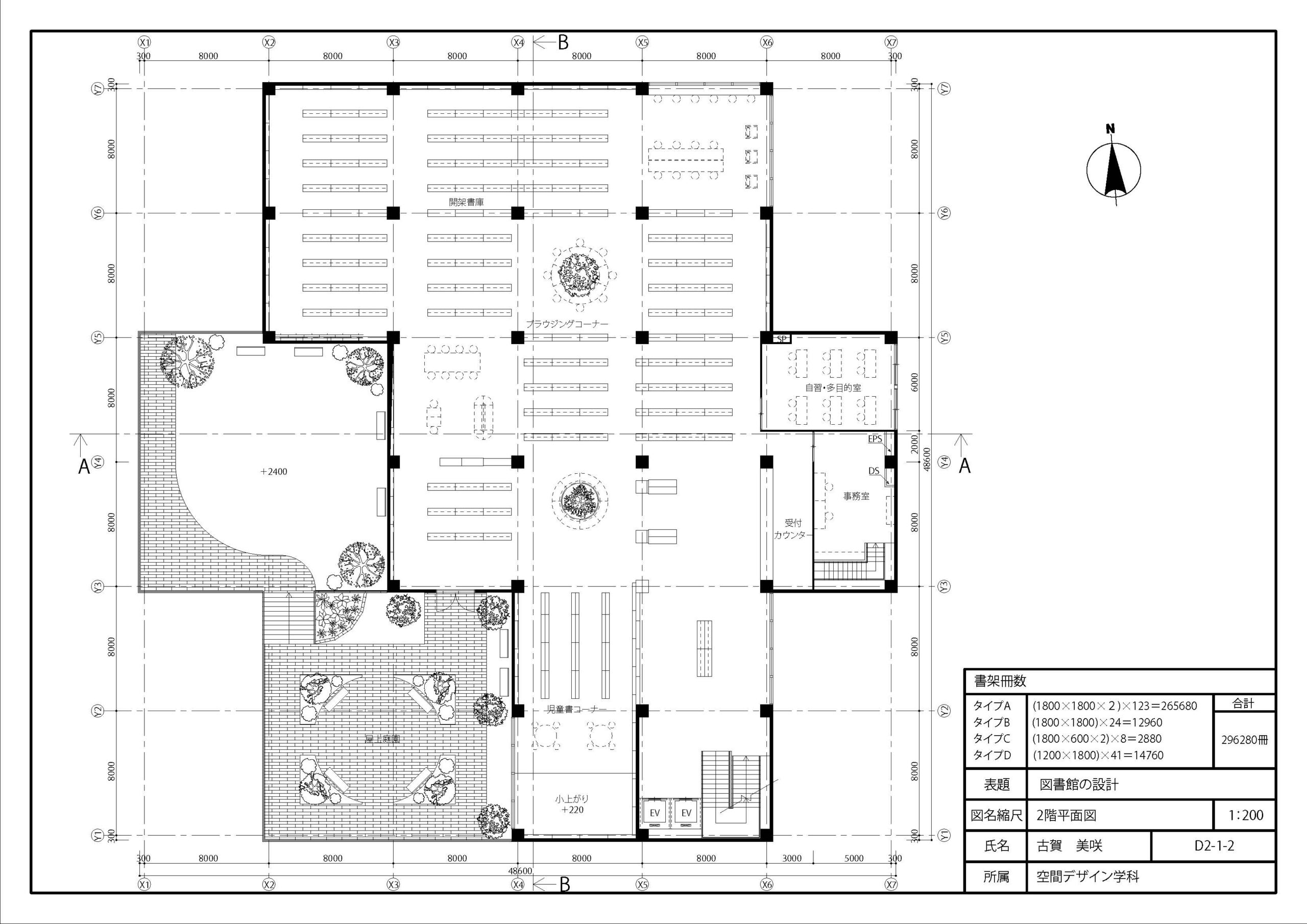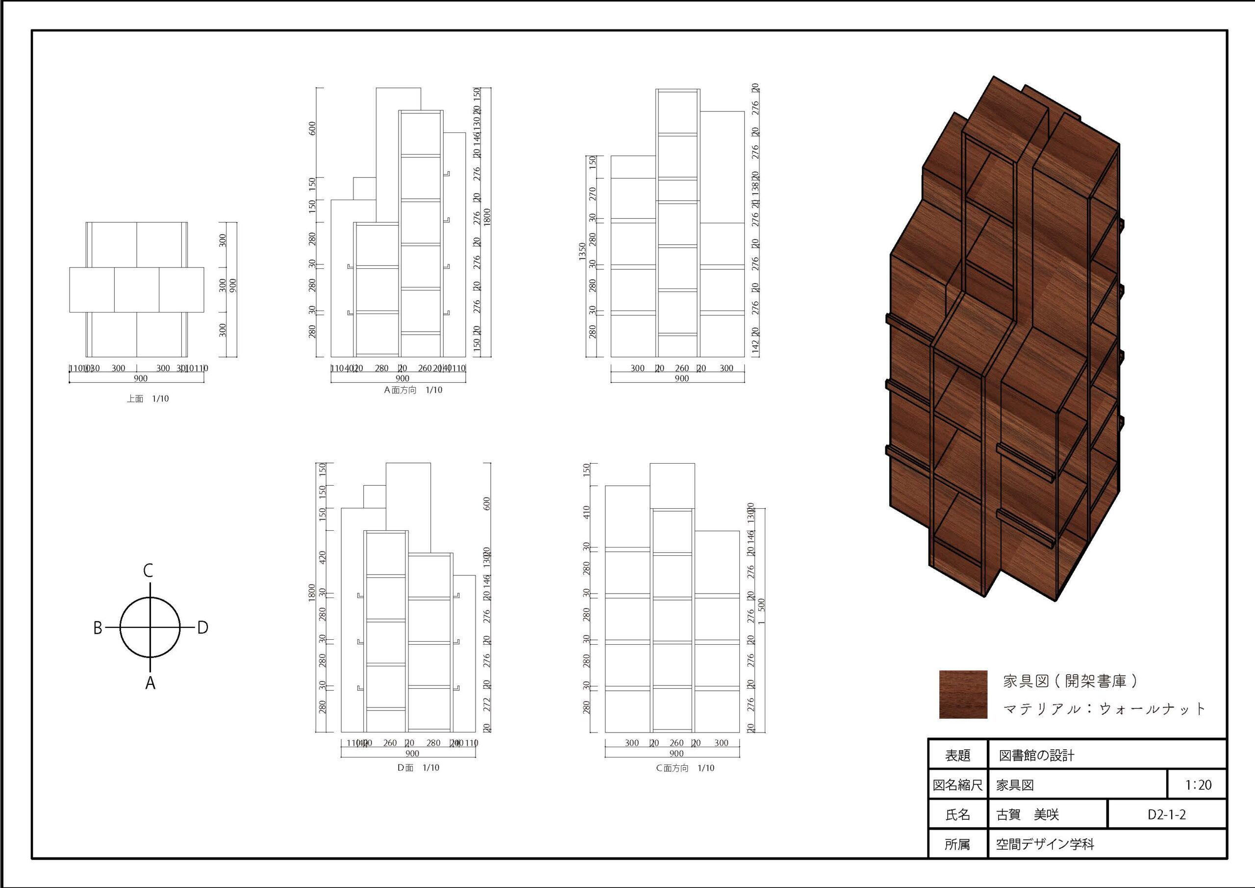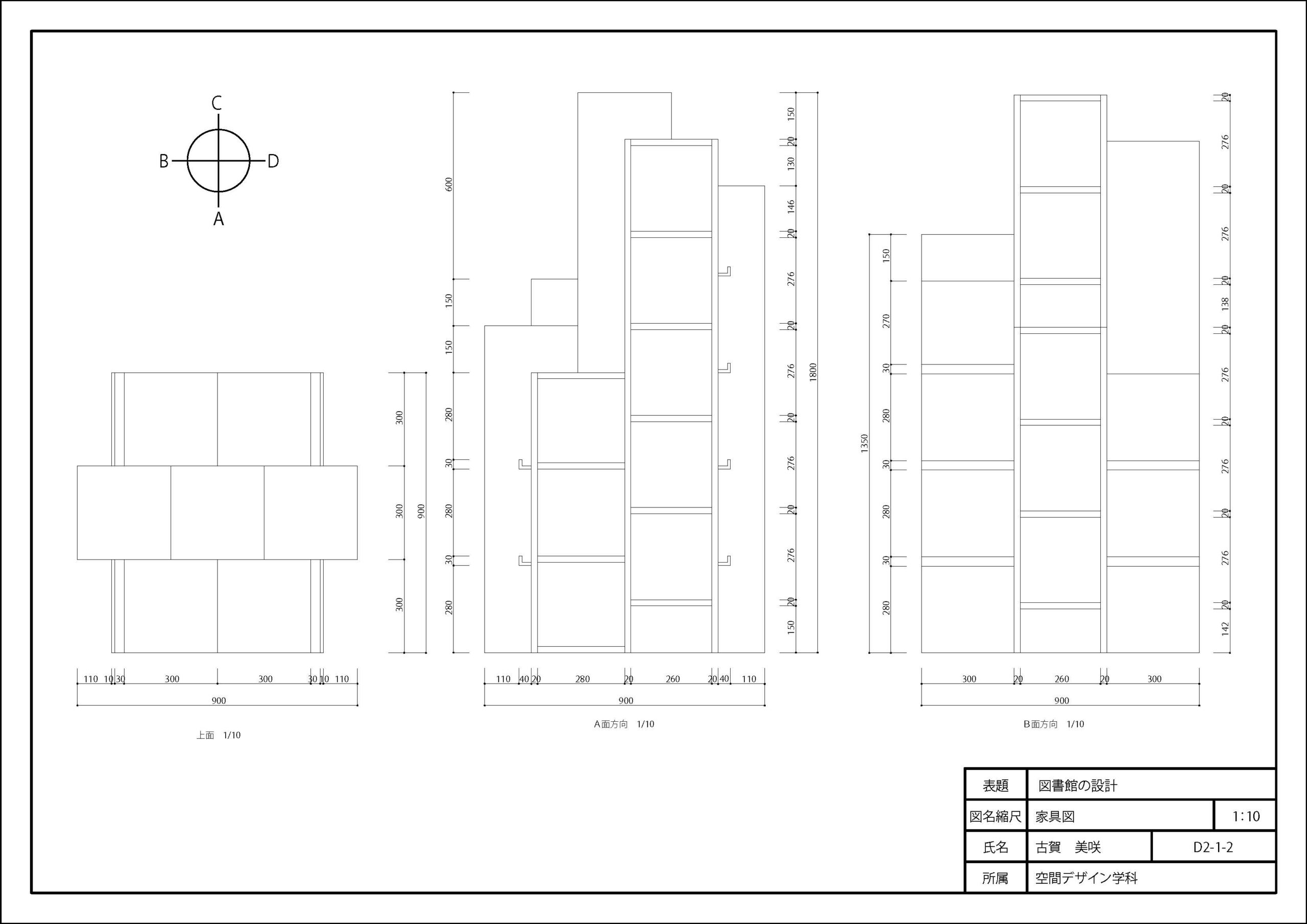 計画する敷地の周りに学校や団地があるので、「みんなの憩いの場になるような図書館」にしようと決めました。団体で利用できるAVコーナー、広い児童閲覧室、席数の多い自習スペースなどを設けることにより、年齢を問わず全ての人に利用してもらえるように工夫しました。試行錯誤をしても100点満点の設計にはならなかったのですが、自分の得意分野である模型製作を頑張ることにしました。模型製作では一から敷地や建物の壁、本棚などを全てCADを使って製作しました。手書きで製作するよりも時間はかかりましたが、その分寸法狂いなく綺麗な模型にすることができました。