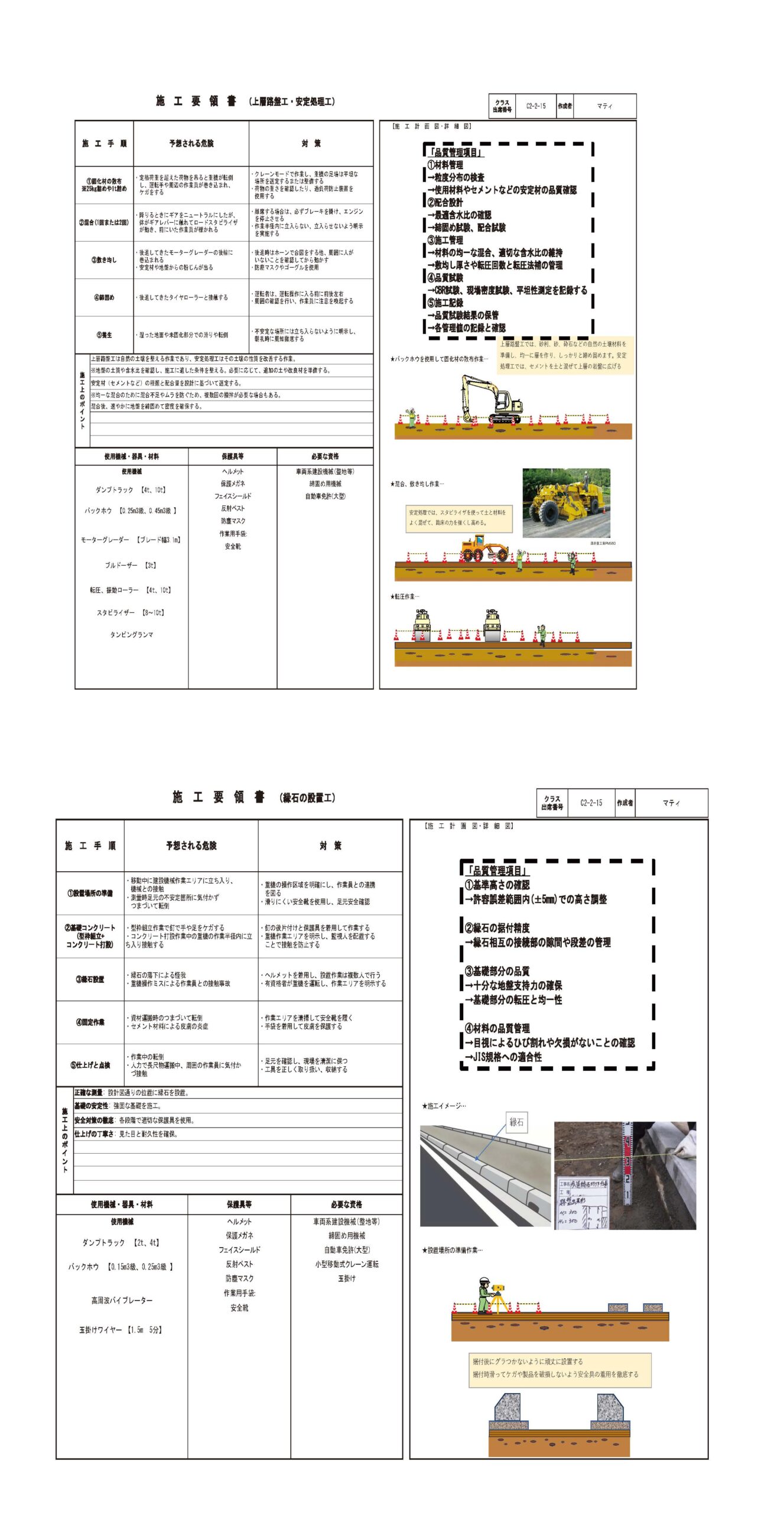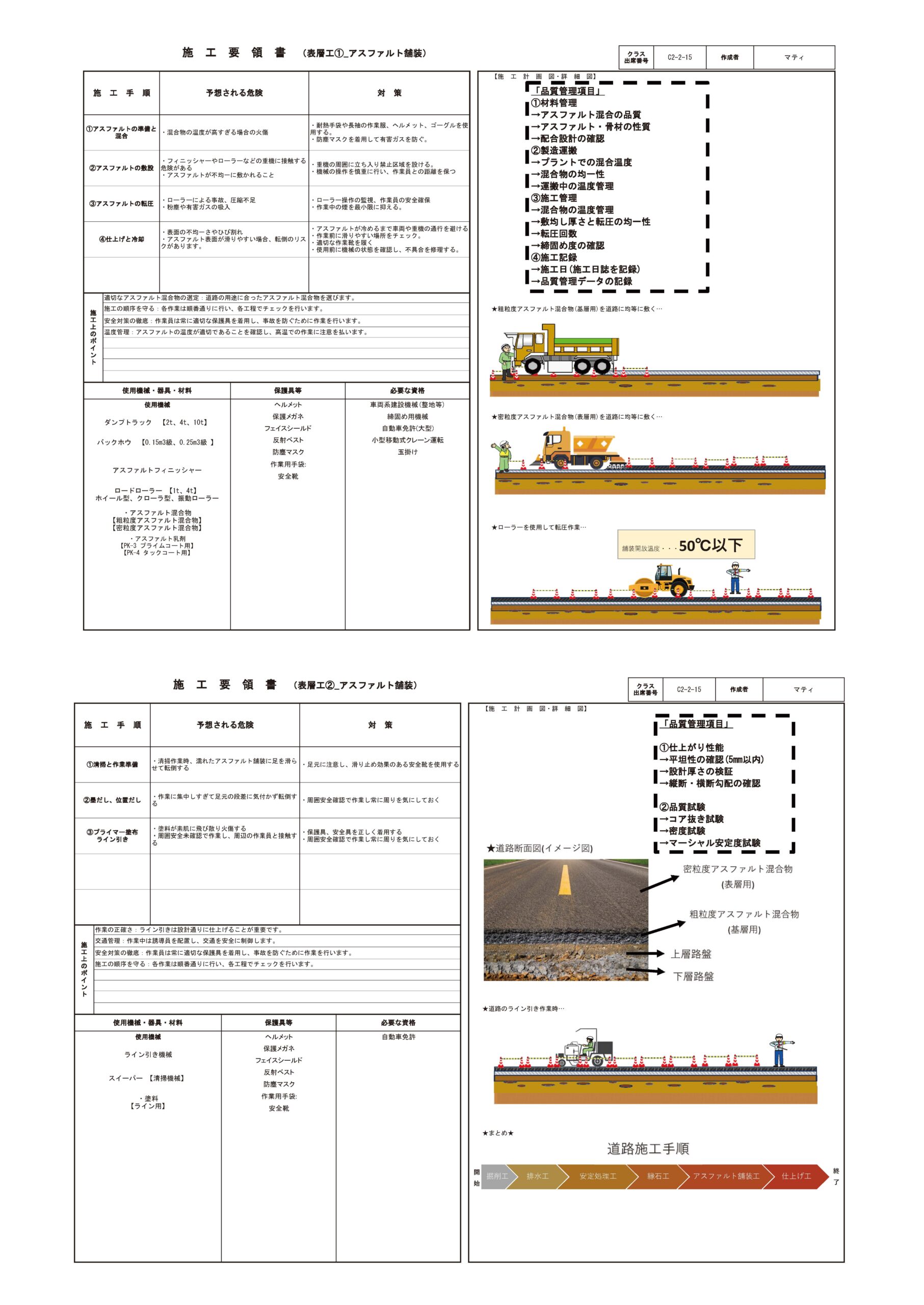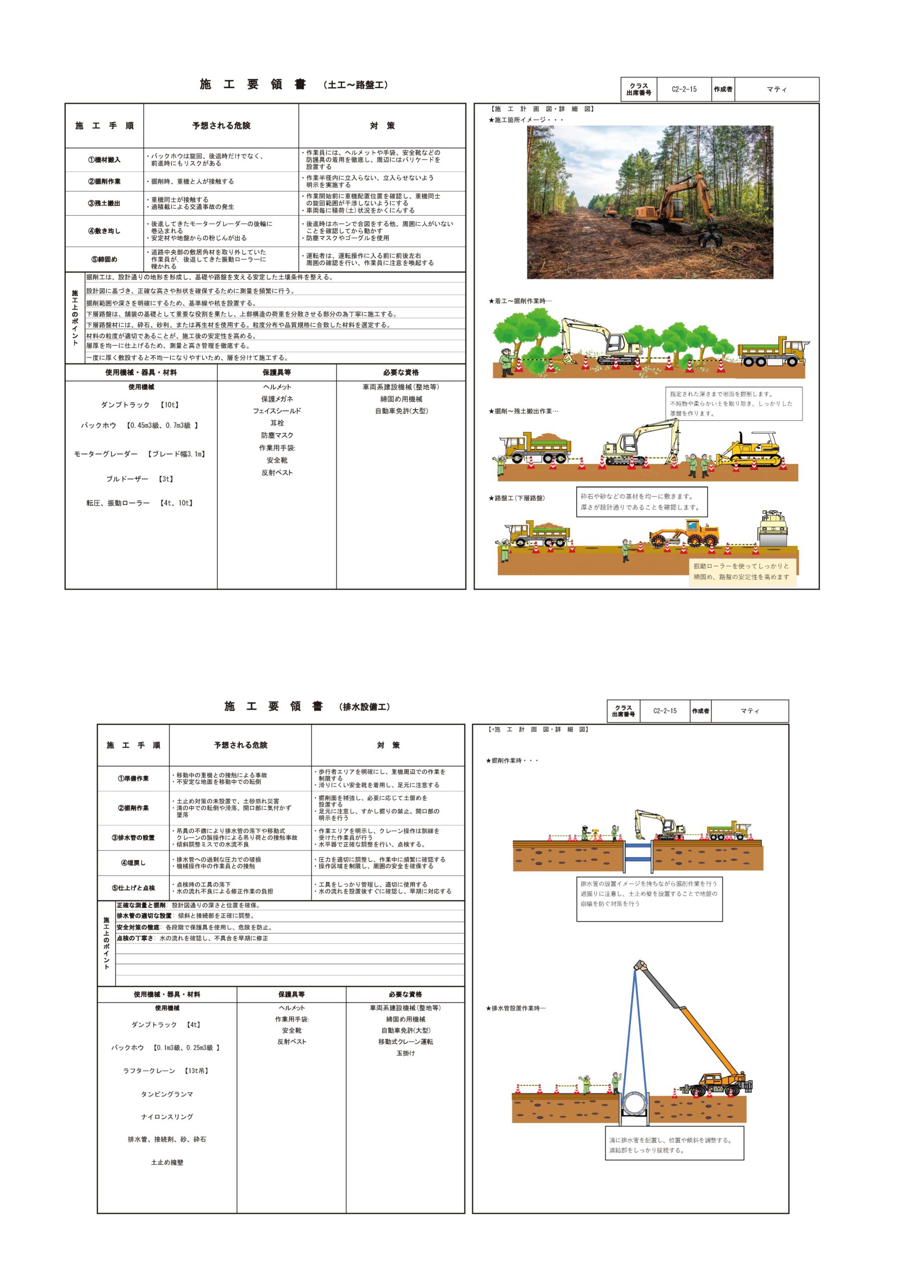 課題の目標は、Excelを使ってわかりやすく詳細な施工要領書を作成することでした。先生から、手順を視覚的に図解するためのイラストデータを頂き、とても助かりました。しかし、私たちはまだ多くの材料を見つけ、インターネットや教科書から選択した建設手順について調べ、私がそれをよく理解して資料作成しなければなりませんでした。手順の順番だけでなく、潜在的な危険性や工事中の危険の回避方法についても知らなければならなかった。計画書に書いた手順に合うイラスト表現は難しく、唯一手に入る素材を使ってほとんどを自分で作らなければならなかったので、とても時間がかかりました。この課題に取り組んだことで、工事を成功させるためには、その前にどれだけの努力、時間、創造性、心構え、戦略計画が必要かを理解することができました。それは将来、私の仕事に役立つものだと思います。