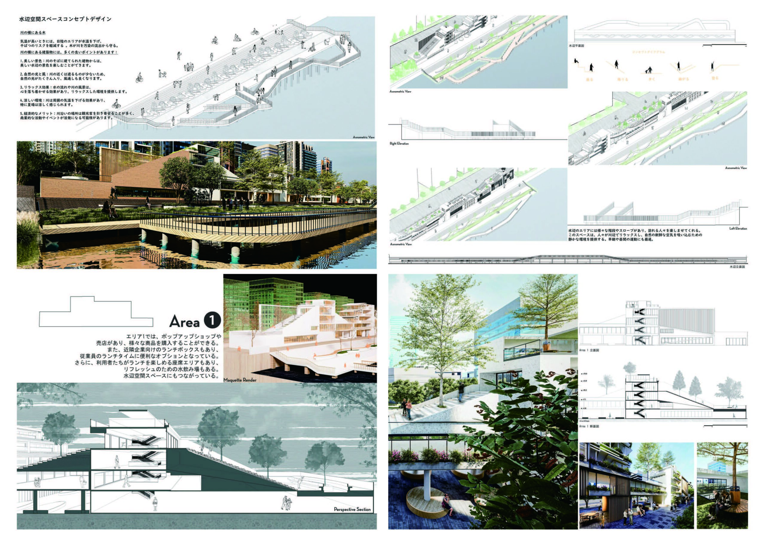 自国カンボジアにおける、現代作家の作品に注視した、アートセンターの計画です。当然の如く、ナショナリズムの建築様式を重視して計画するのが一般的でしょうが、「現代アート」と言うこともあり、現代及び未来像の建築デザインを模索した作品と言えます。「明日に向かって撃て」とばかりに、メコン湾に向かって矢を放つ様相は、正しく古代から現代への文化遺産を尊ぶ「建築」が成しえる技と評価します。<青砥聖逸>