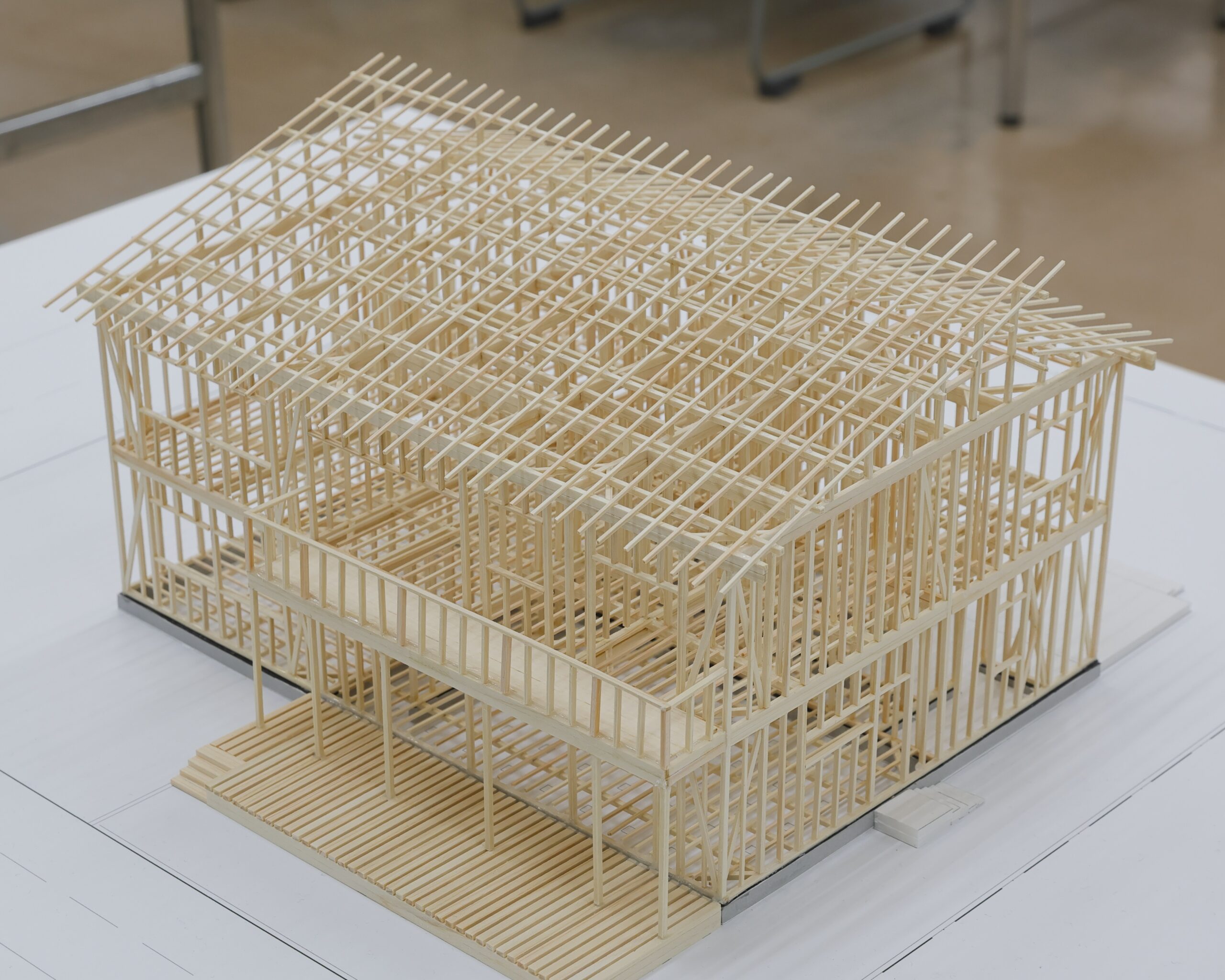 この作品は彼の地元、徳島県の阿南市を舞台に、建築物を通じて自然豊かな海を背景に地元住民との交流に加え、町の活性化を図ることを目的としてスタートしました。「人」と「自然」、「社会」を繋げ、かつ家族と「住」を満喫できる夢ある作品であると感じております。計画からはじまり、作図、模型作成と流れ、木造在来軸組構法の更なる知識向上と成長が見受けられました。何より楽しく丁寧に、この作品を作り上げてくれたことに感謝したいと思います。<樋下 昌俊>