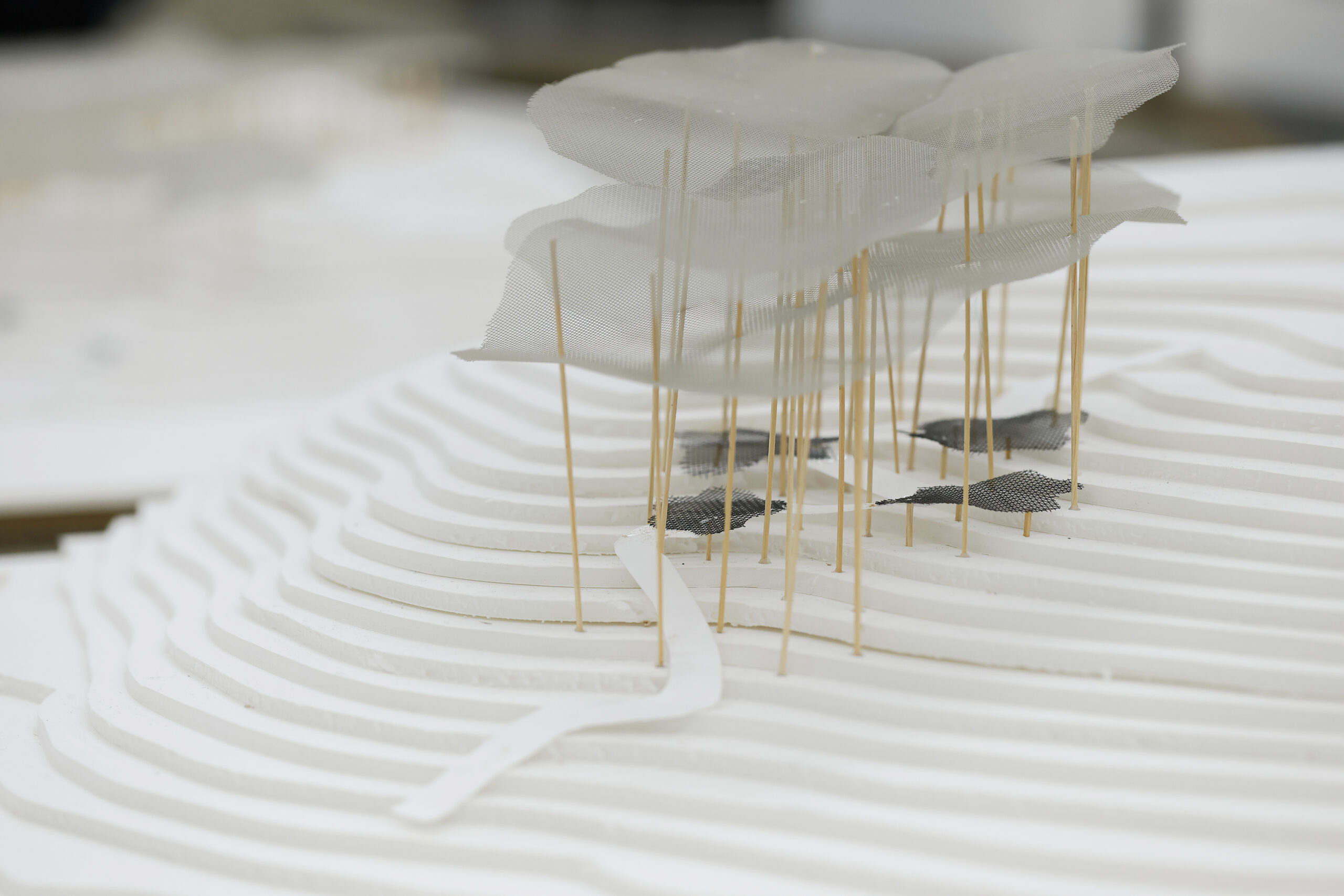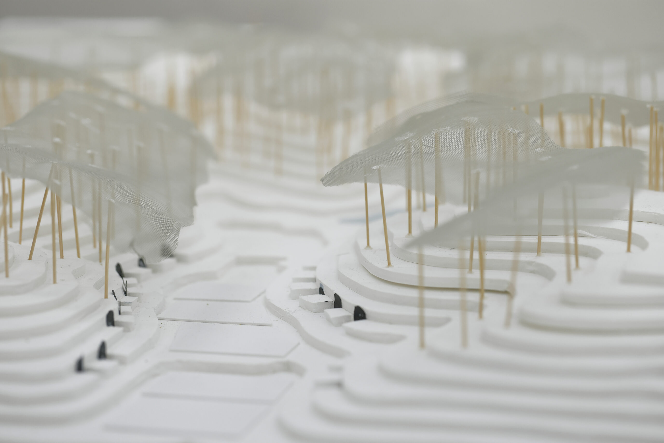 今回の卒業設計では「自然」をテーマとして取り組みました。初期段階では「人間の造るもの≠自然であり、木や水や風などの地球に元から存在するマテリアルこそ自然である」という考えであったため、住居などを全て地中に隠す案で進めていました。しかし、ブラッシュアップする内に「地球に自然的に存在する人間が生み出した物も全て自然の一部である」という考えに至りました。そして、自然と人間の関わりを考え、たどり着いたのが、森と人が変遷してゆく建築です。森の一部を建築として扱い、時間とともに住む人や建築の形が変わり、もしかすると用途も変わるような広がりのあるデザインとなっています。ただ、自分の中でこの「自然」というテーマはまだまだ考える余地のあるものだと思うので、これからも大切に扱って行きたいです。
