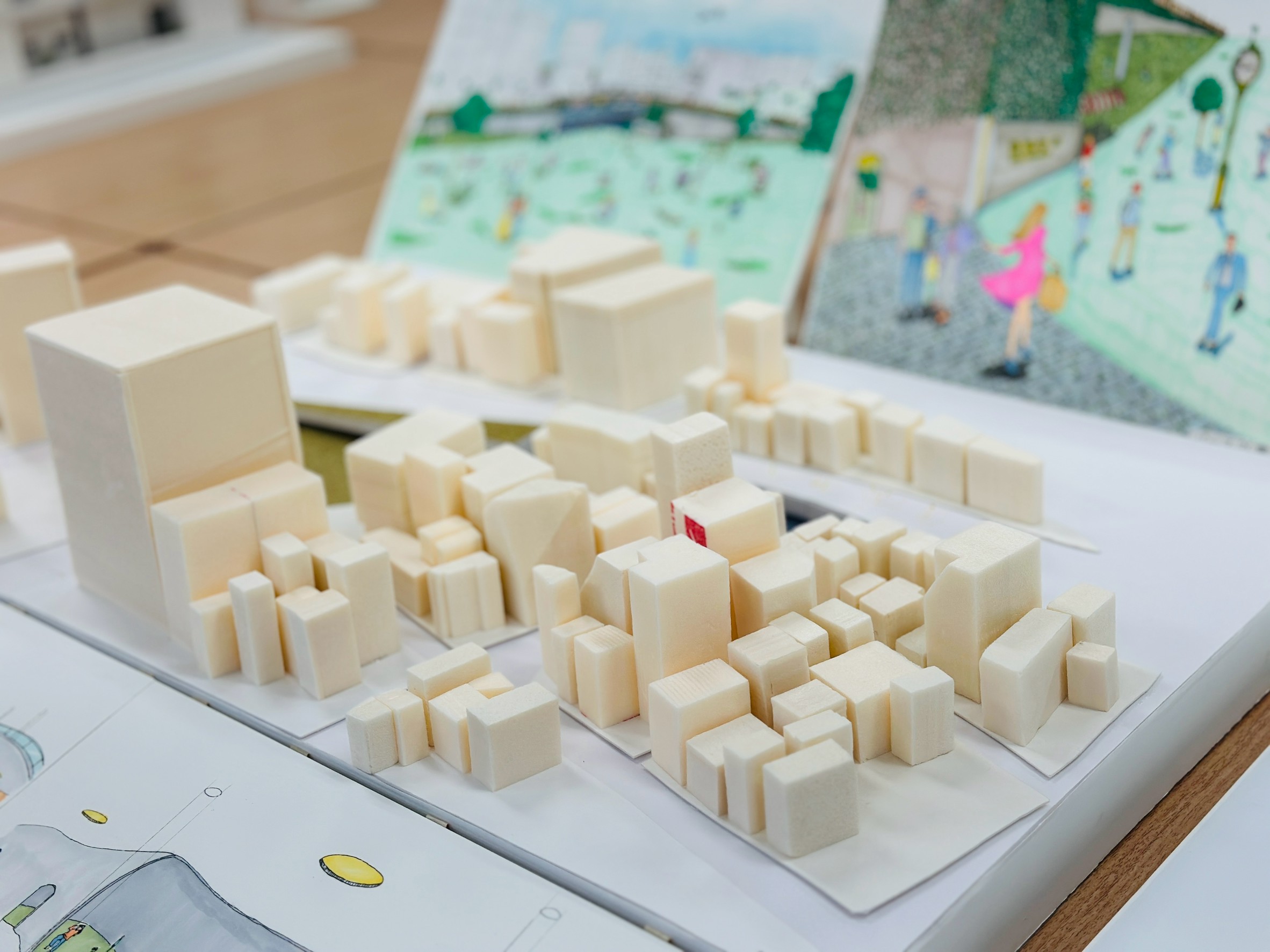 梅田スカイビルのすぐ隣に、誰もが気軽に立ち寄れる図書館を設計しました。観光客や地元の方が本を読んだり、一息ついたりできるよう、開放的で心地よい空間を目指しています。自然光をたっぷり取り入れた明るい館内には、地域の文化を紹介する展示や様々な知識を吸収できるコーナーを用意。静かに読書を楽しむだけでなく、人と知識がつながる場になればと思います。都市の中に新しい「居場所」をつくることで、図書館の魅力をもっと広げたいと考えました。