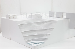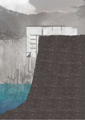 社会的なテーマから入るか、魅力的な場所を探すのか。そんな思考から卒業設計に向き合い、彼女は膨大なリサーチと検討やスタディを経て見事にまとめ上げてくれました。場所は岡山県民でもあまり知られていない瀬戸内の孤島「北木島」です。高度成長期に採石場として活況を呈しながら時代の波にのまれ、人々が去った忘却の離島には127か所の採石場が残り、雨水がたまって丁場湖と呼ばれています。それはまるで島の隆盛にもてあそばれ流した島民の涙が溜まったかのように深淵に透き通るように緑青をまとっています。最後まで見ていただければ持続可能な島社会のために「学び」「住居」「観光」という3つの必要不可欠な要素を考え、これ以上丁場湖を傷めず寄り添うような建築におきかえて提案した制作者の一年余りの想いを感じていただけるのではないかと期待しています。