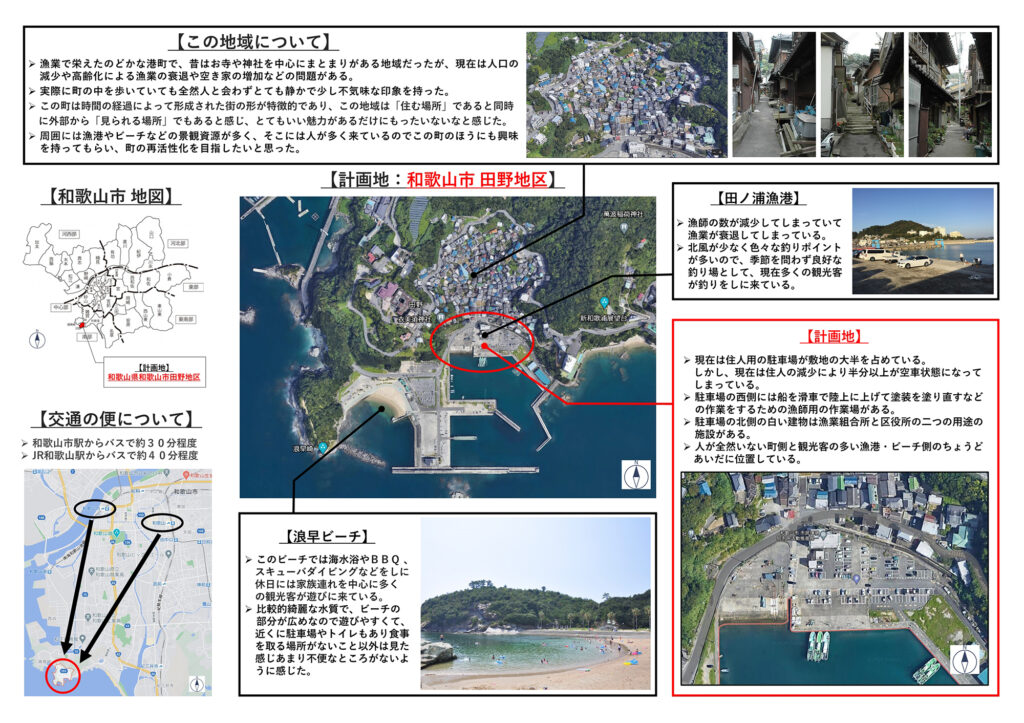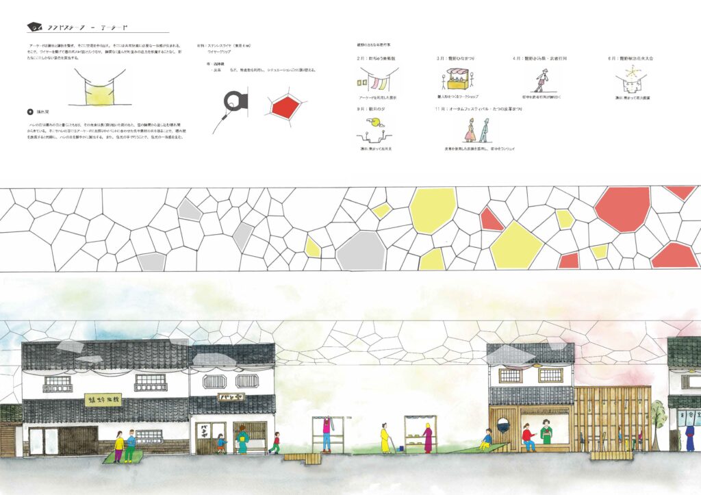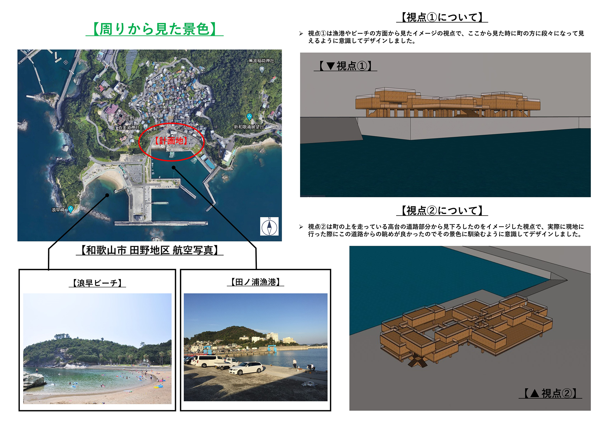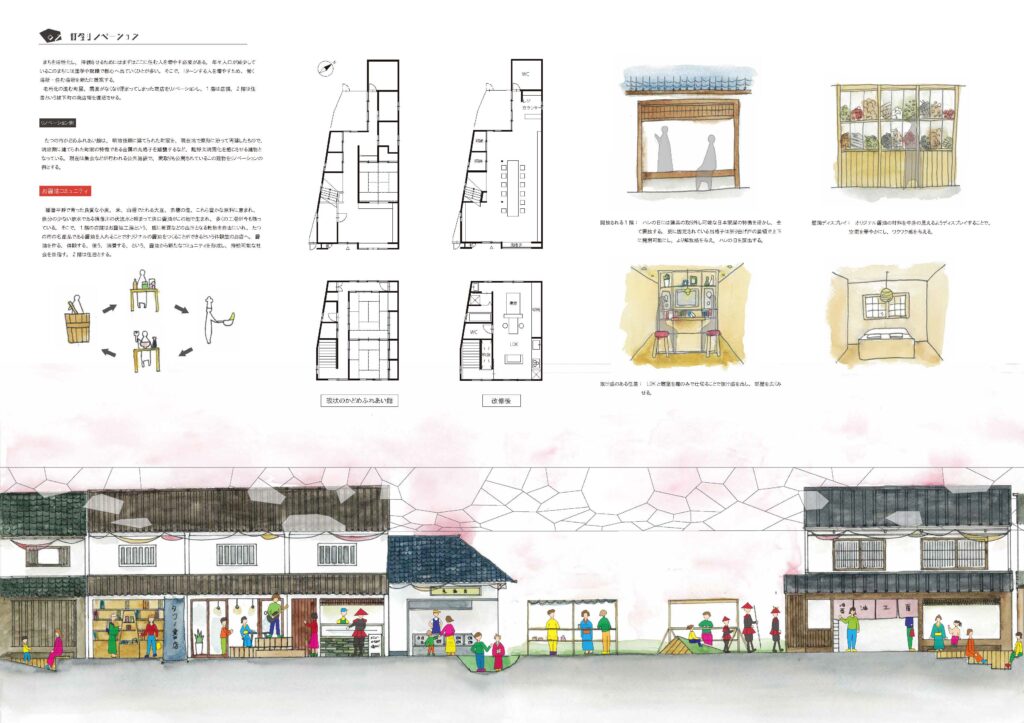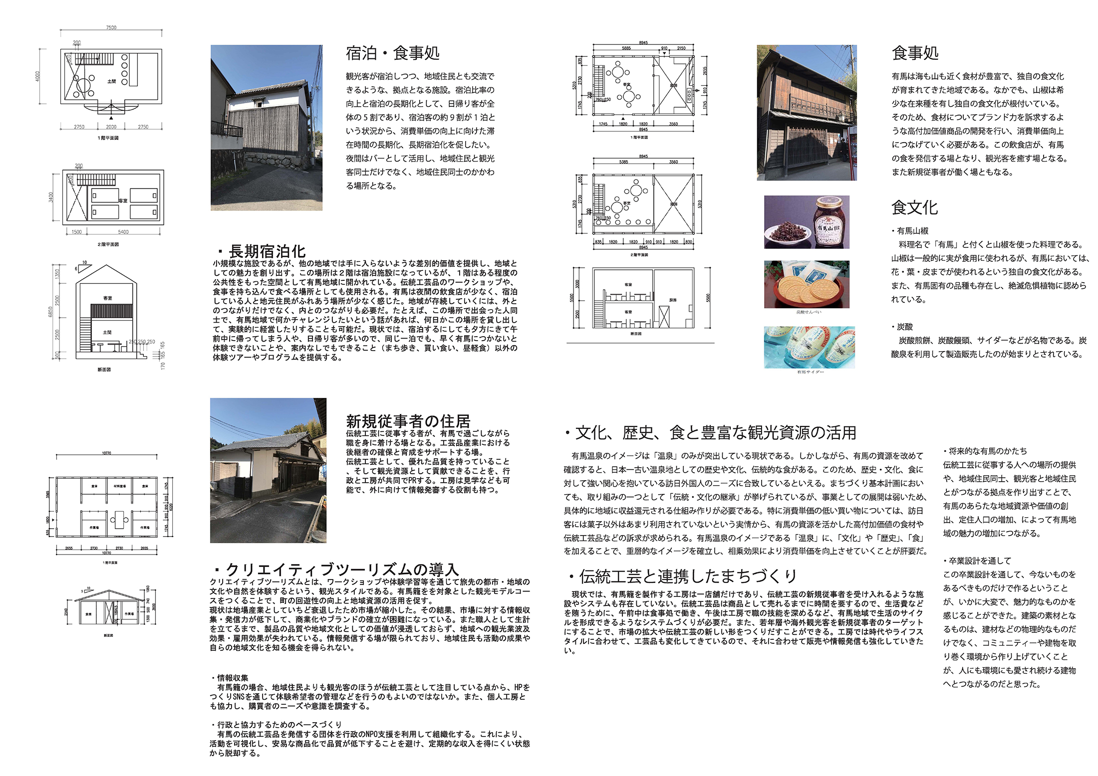 諸事情から具体化には時間が掛かった。ただし成果物を見ると、実現した際の地域の活動と観光が相乗効果を生む社会的な効果が十分に望める内容になっている。大きな公共空間のプロジェクトを最後までやりきった経験を、彼の今後のキャリアで活かして欲しい。<田中 おと吉>