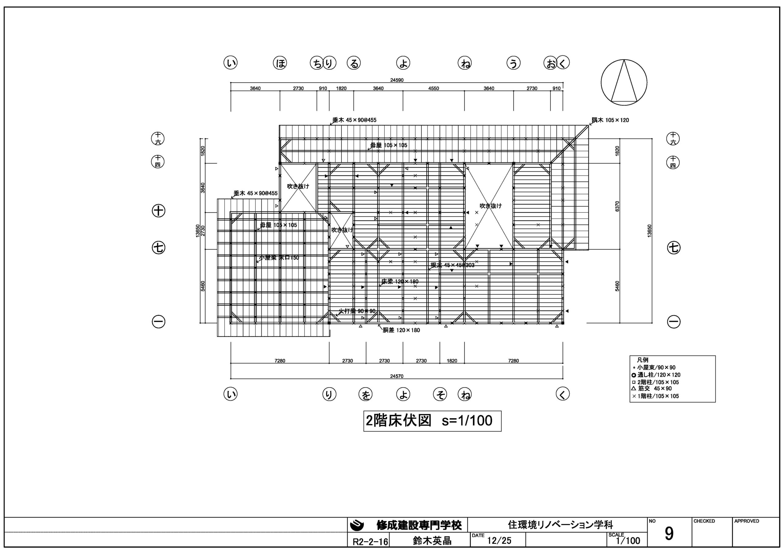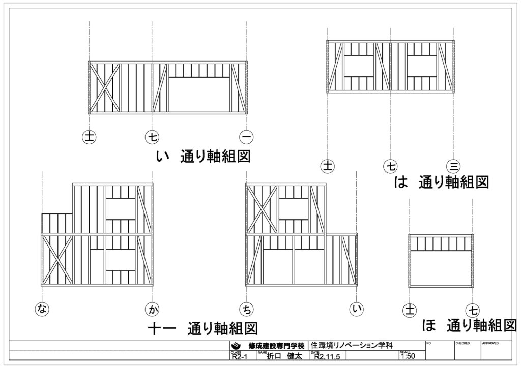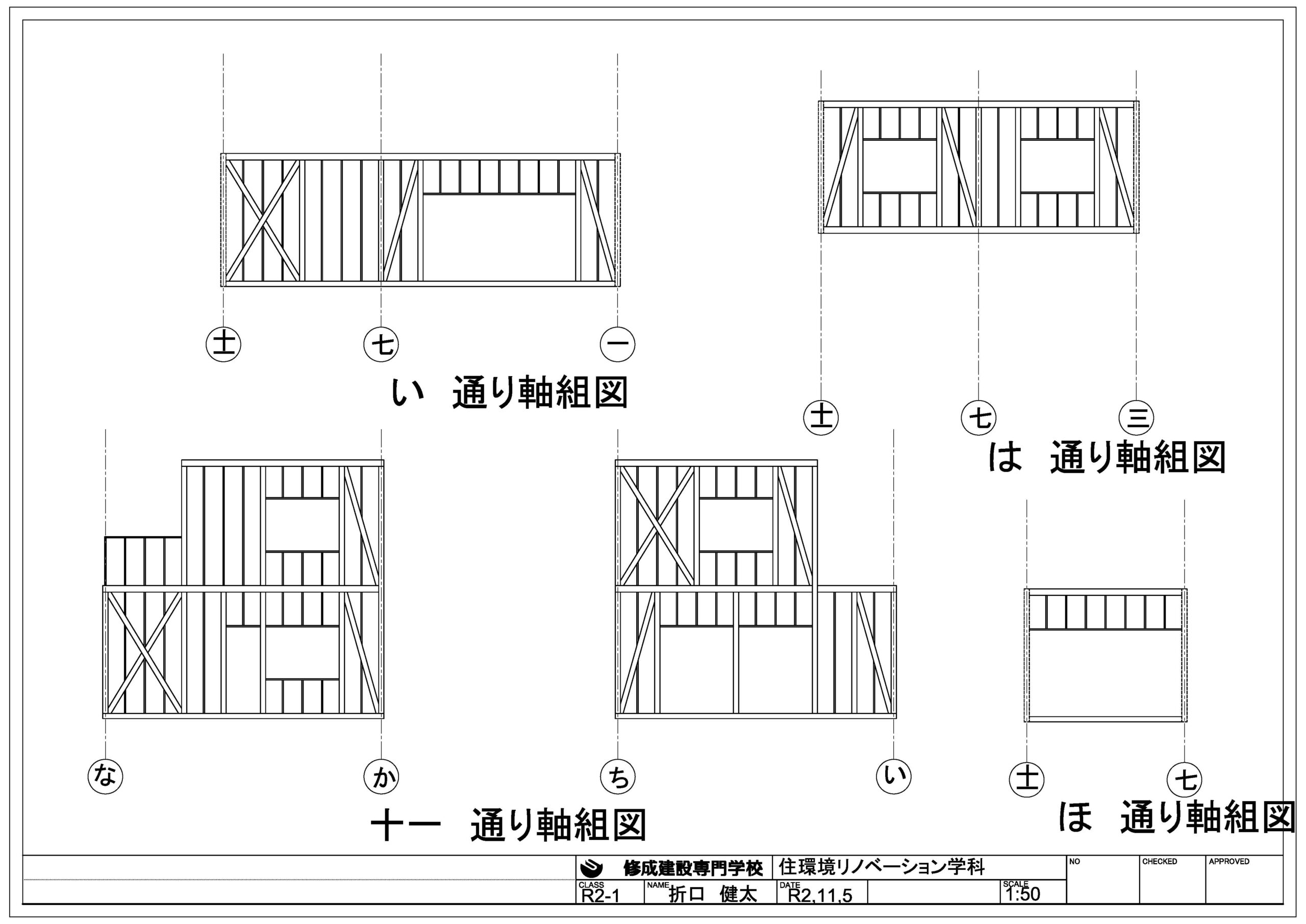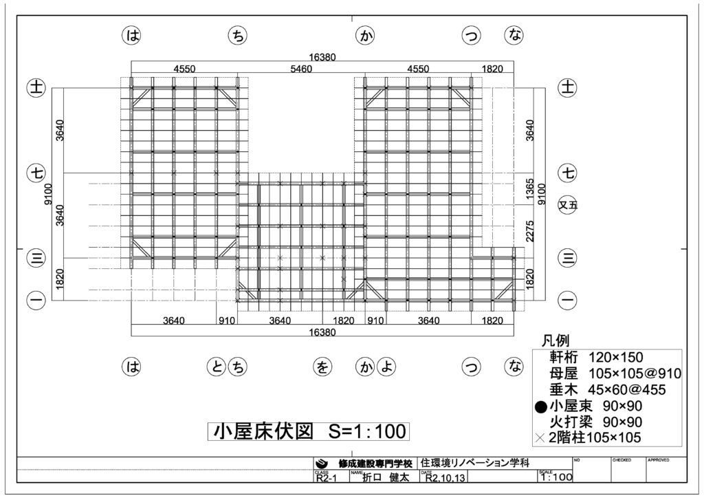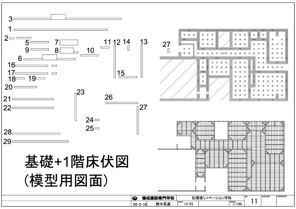 今年度は、時間的な制約もあり、伏図・軸組図からのスタートになりました。その一方で、泉先生のグループとの協働作業により、スケジュール管理ができ、予定通りの成果を収めることができました。
