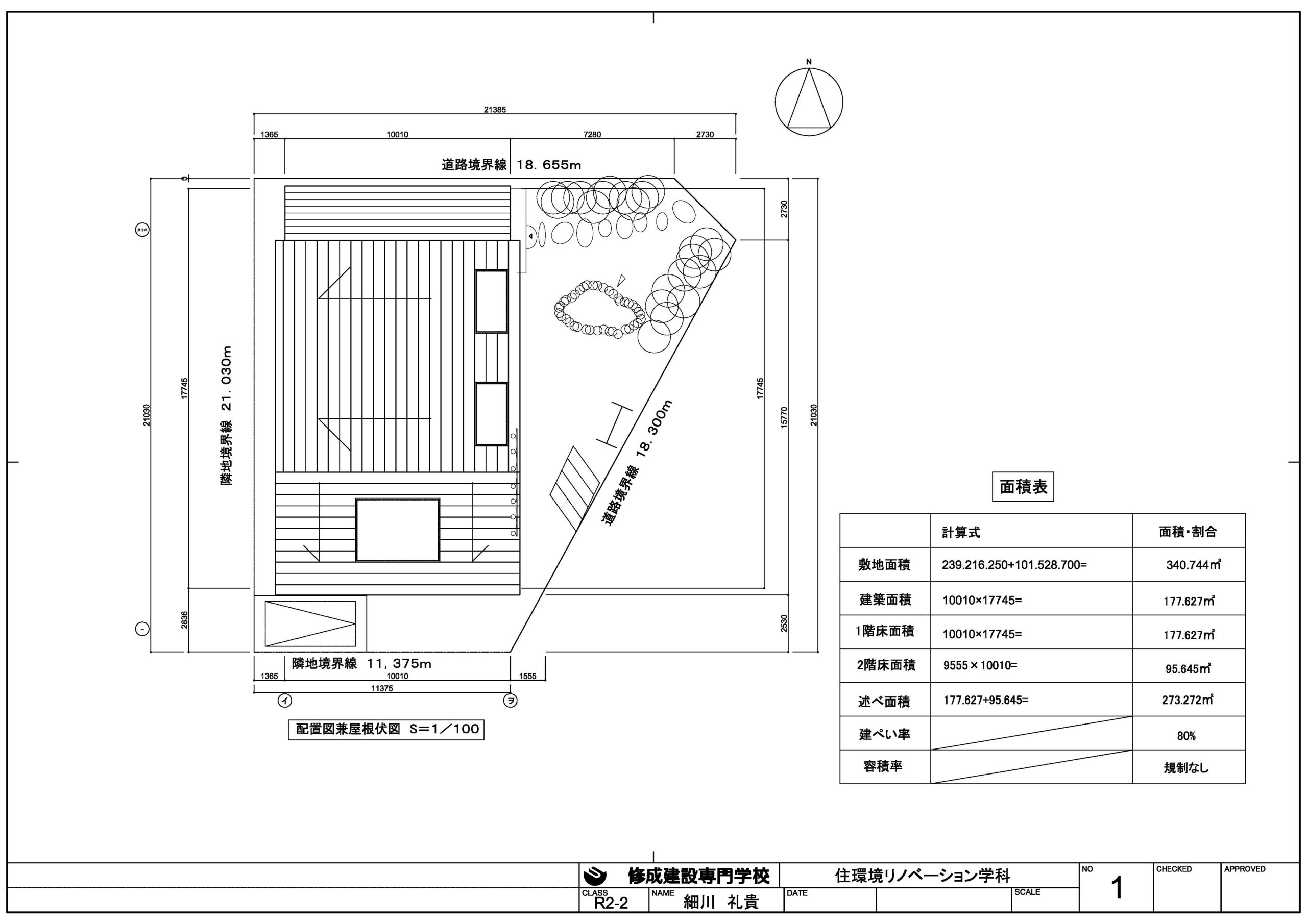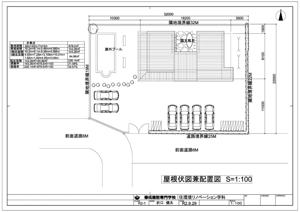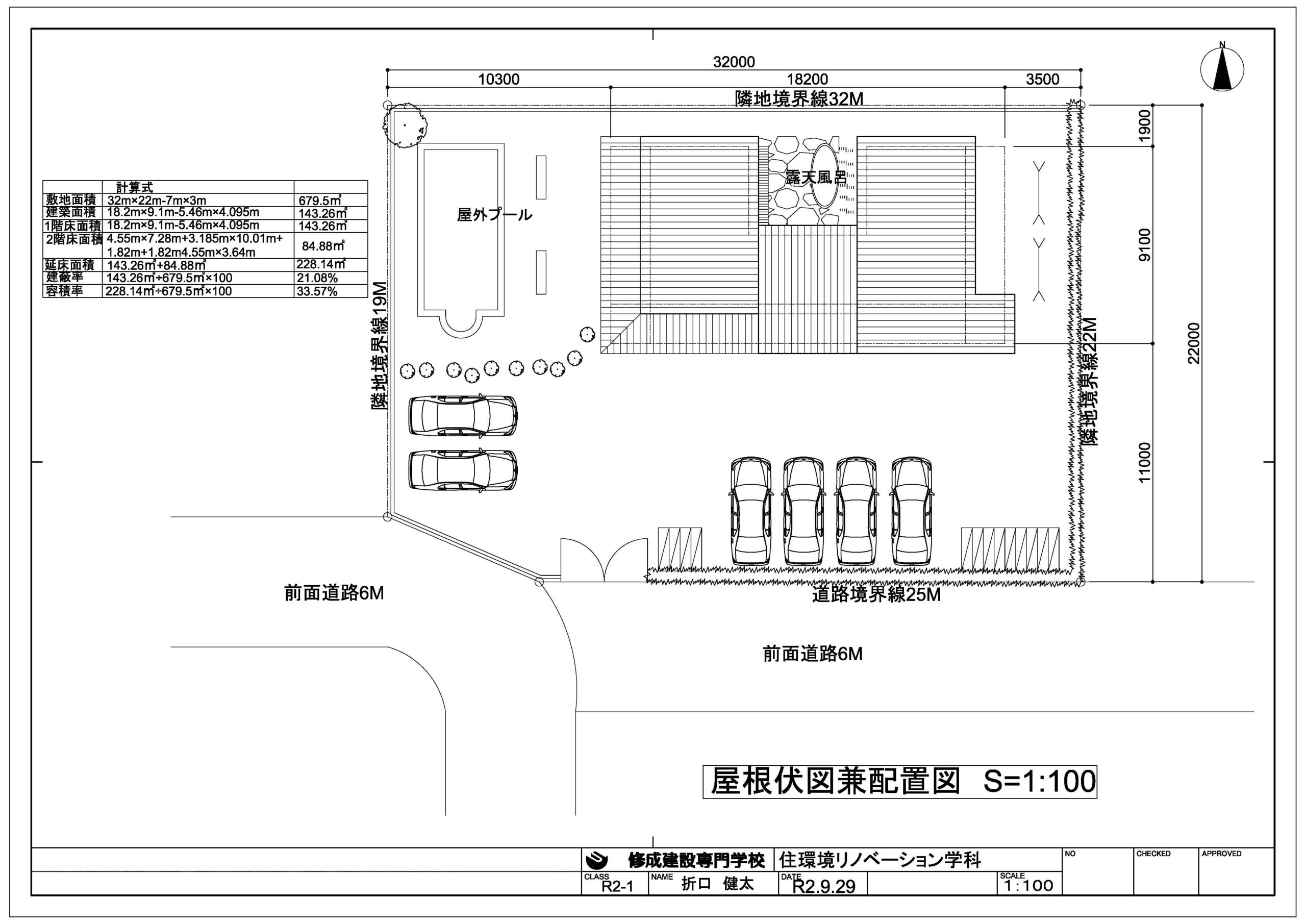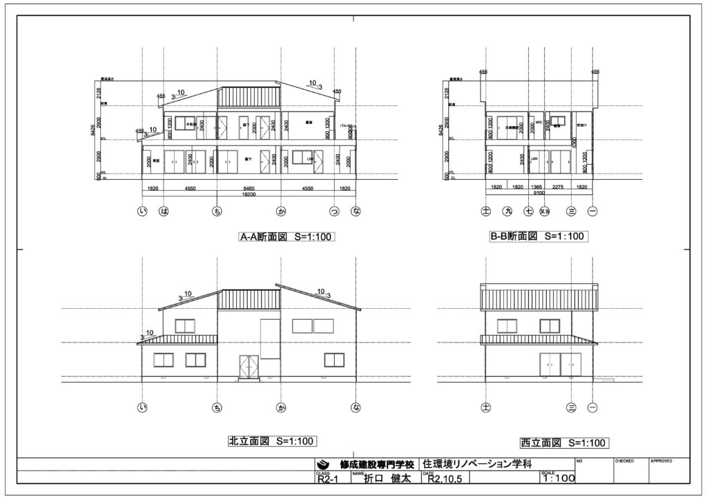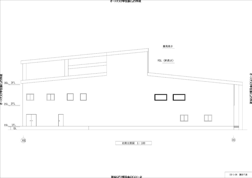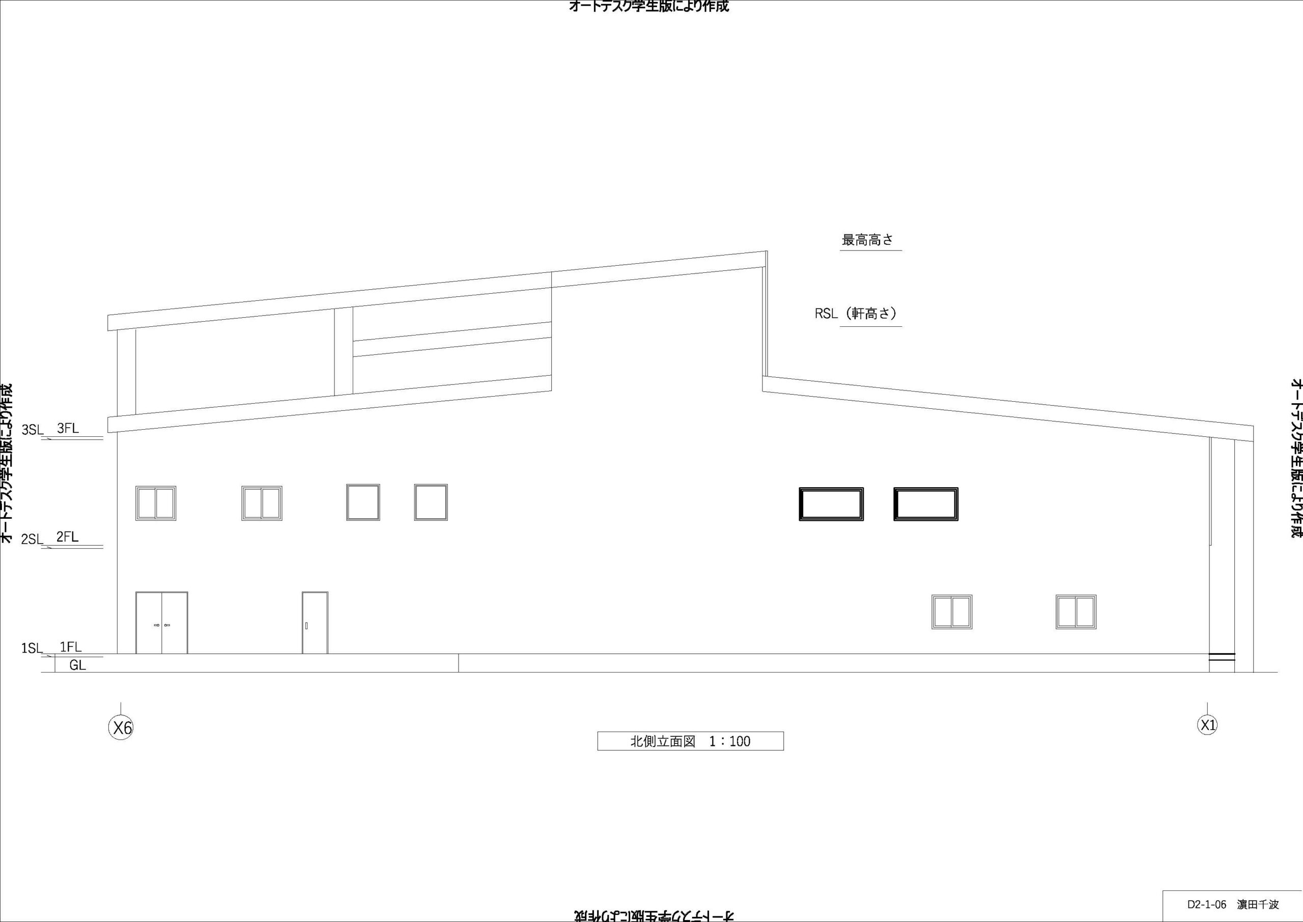 彼の作品は、計画当初から決まっていたようで自分自身が将来建てたい家があったようです。その思いがあったからか敷地の決定から必要な説明資料も早々に仕上げ、瞬く間に建物を計画し図面作成と問題なく進捗していき最終の模型までも当初心配していた事を忘れるような勢いで完成させました。図面を始め図面と製作模型まで気を抜くことなく、予想以上に彼の心にある気持ちが表れた完成した作品だと思います。<山本 順也>