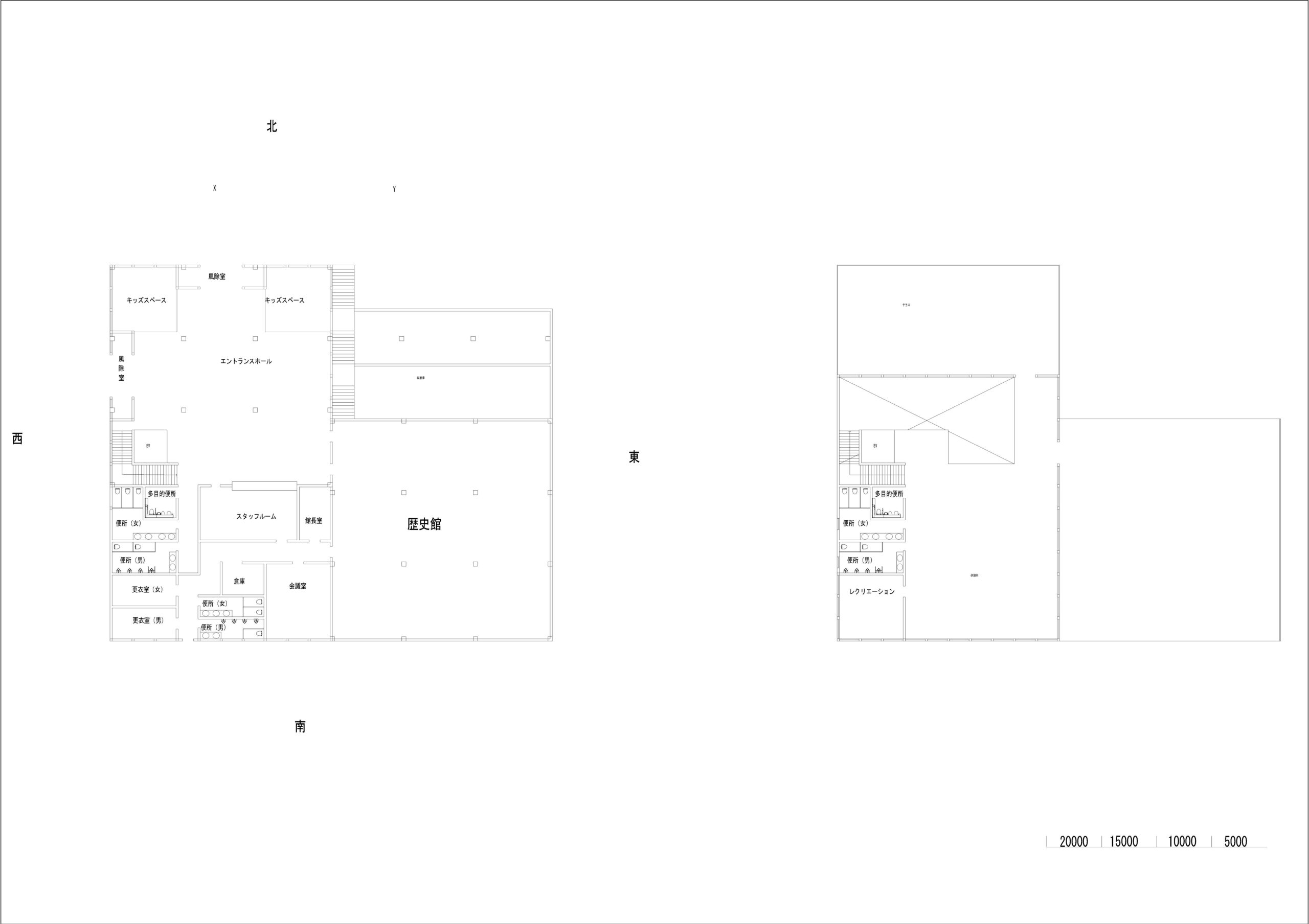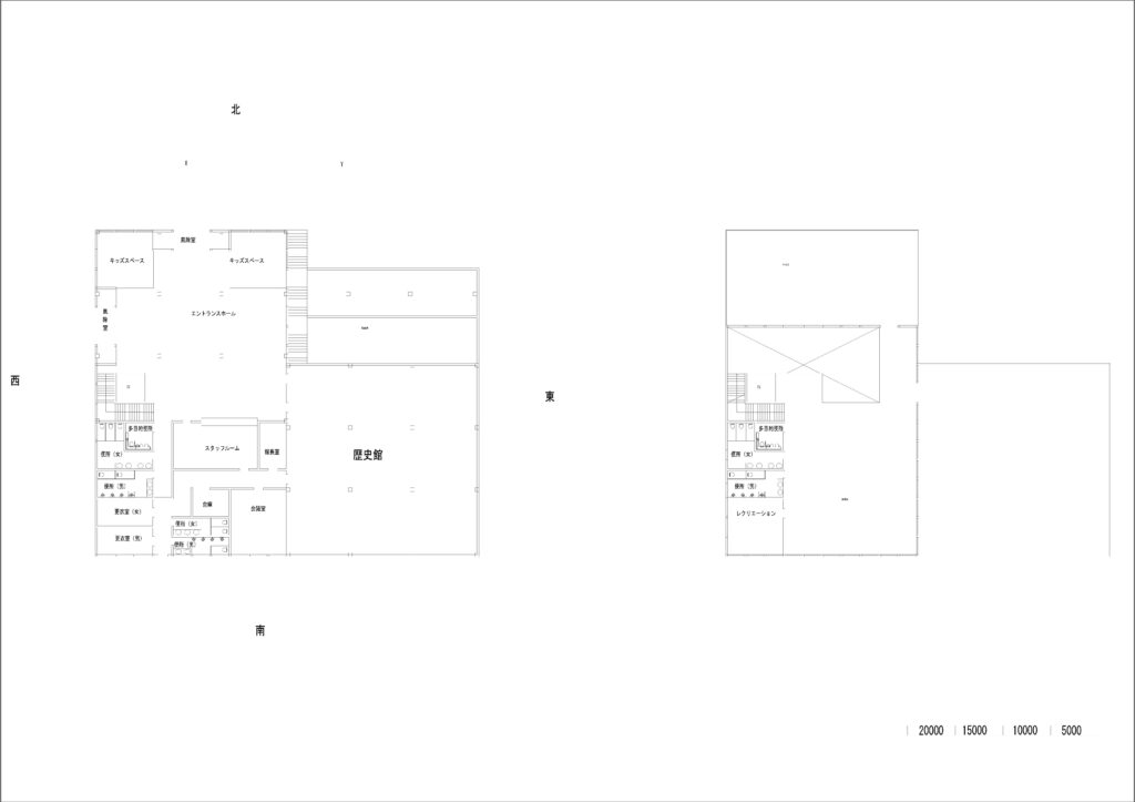 高槻市にある歴史の散歩道の道中にある公園を敷地に選びました。用途は近隣にある歴史館の移転です。建物は遊具の近くに計画し、歴史館側から遊具で遊ぶ子供達を見守れるようにしました。歴史館の外壁には段差をつけ利用者がそこでくつろげるようにしています。大きく取った段差の1つ1つは子供が登って遊ぶことができます。建物の窓は大きくして室内に入る光を多くしました。また用途を考え一階と二階で利用者の年齢層を分けています。