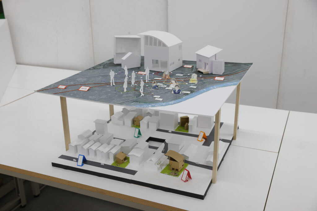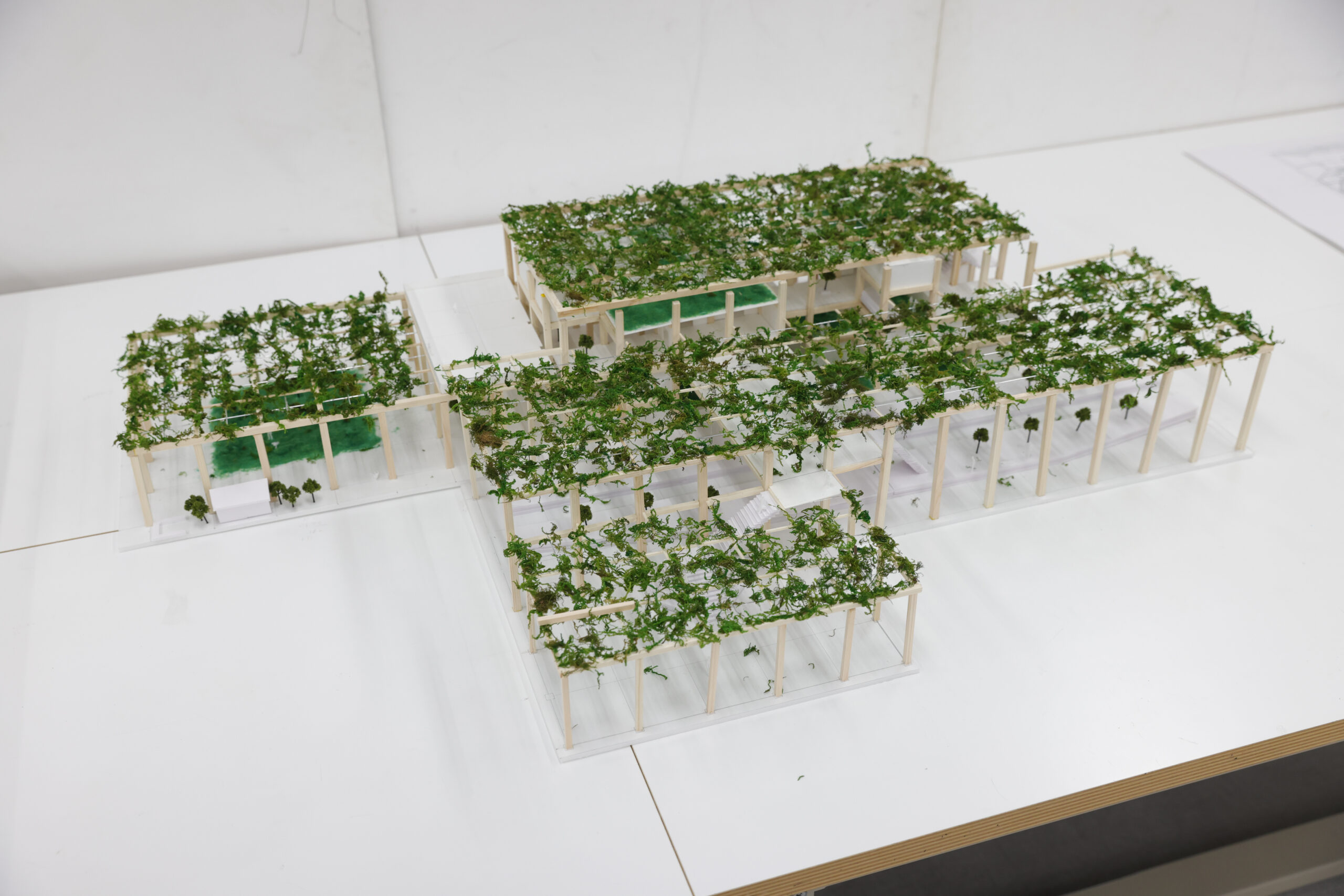 ITやSNSの発達、新型コロナなど近年においても人々の生活は大きく変化をしています。その中で新しい生活や仕事の環境はどのようにしていくべきか、建築、空間、自然がどのように融合されていくべきか、制作者の答えが表された作品である。時代の移り変わりによりコミュニケーションのあり方も変化していくが、未来の姿を見せてくれている。効率だけを重視する社会ではなく、豊かさを大切にしていく空間ができていると感じた。<岡崎 祐介>
