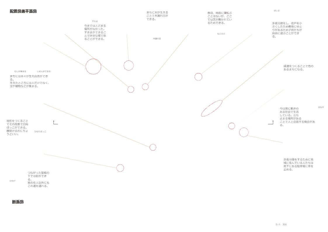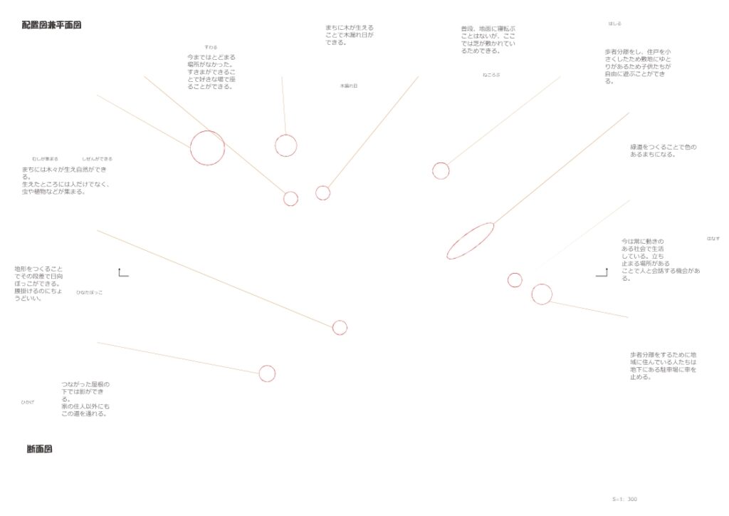 ヨーロッパとは異なる日本独自の『広場』の定義づけとその提案に期待したが、現状は敷地設定の饒舌さに少し飲まれた結論で留まっていて残念。卒業までにもう一歩踏み込んでくれると期待している。<田中 おと吉>