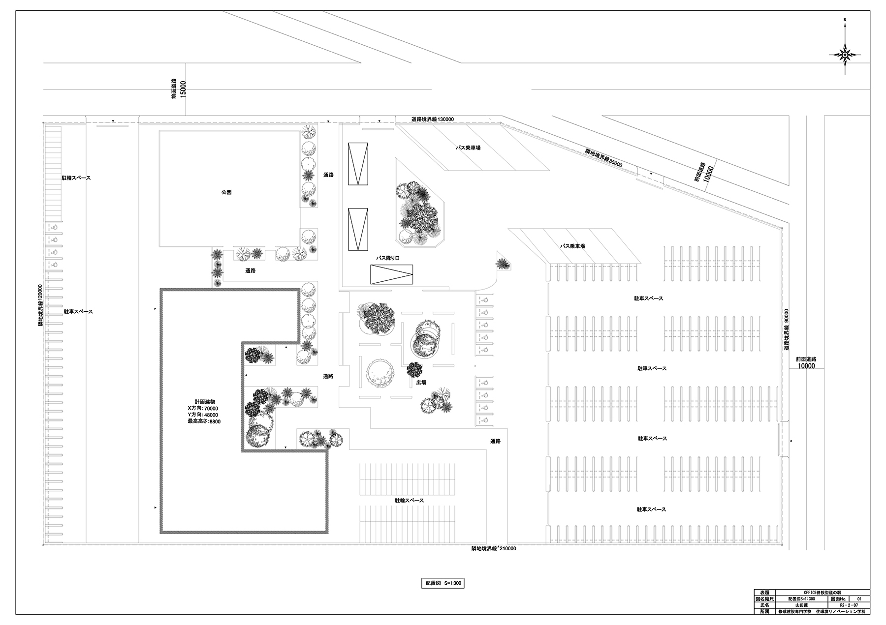計画敷地付近には小中学校が多くあり、高速道路の出入口が近い事を活かして地域を活性化させられる様な施設を設計する事にしました。オフィス・学校行事・旅行客の寄り道スポット。利用者全てに笑顔になってもらえるような建物にする事で地域が1つにまとまって見える事を目的とし考えました。