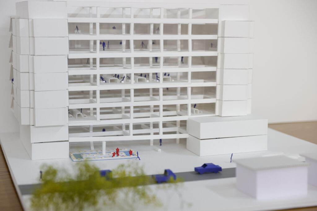 若い世代のコミュニケーション不足を解決する集合住宅を設計しました。敷地は都市でたくさん見られるコインパーキングです。いろんな敷地のかたちに合わせられるように、単身用の住居をモジュール化し、不整地の活用の活性化を可能にしています。それぞれの住居の面積を減らし、公共空間を拡大して、人と人が面と向かって交流する機会を高める集合住宅にしています。