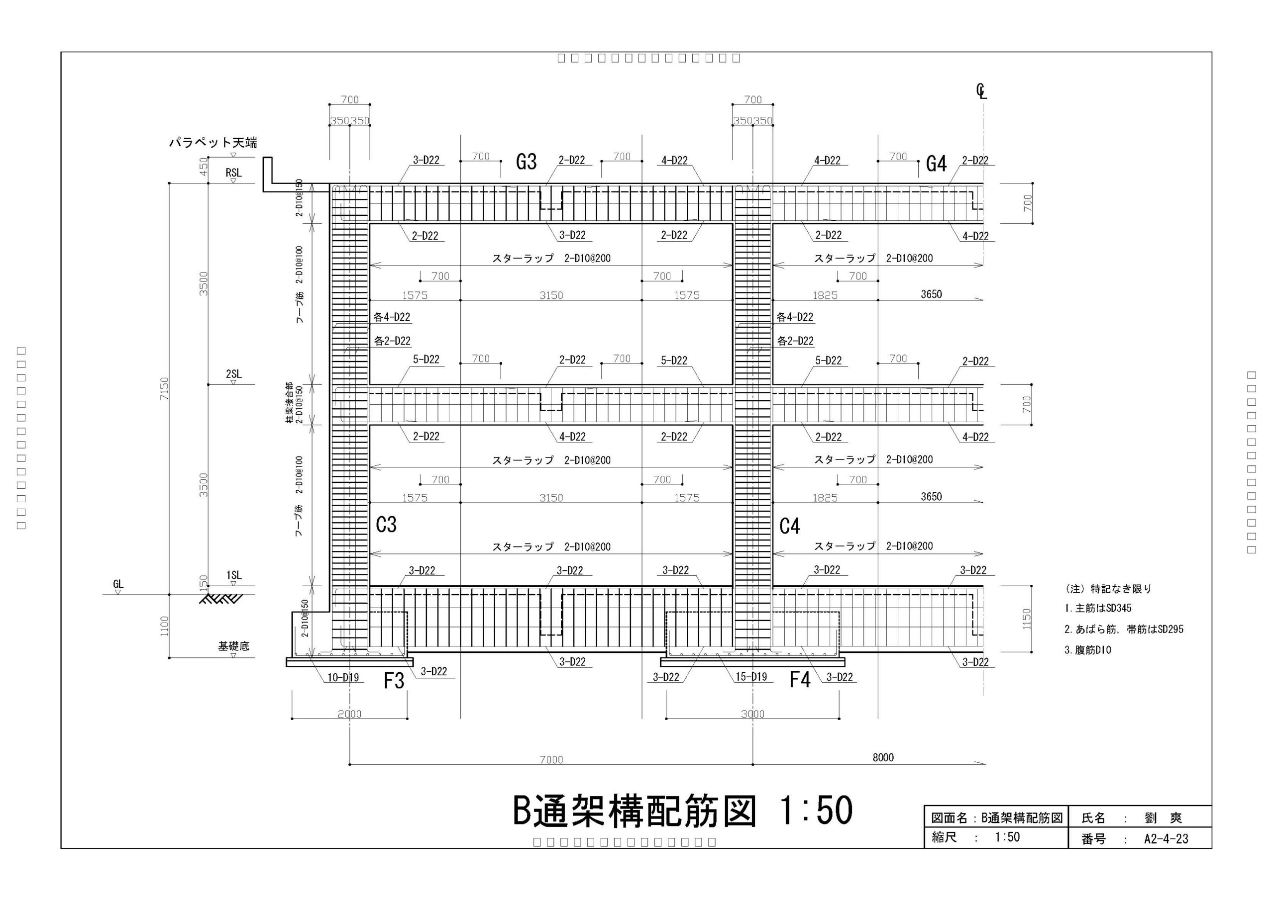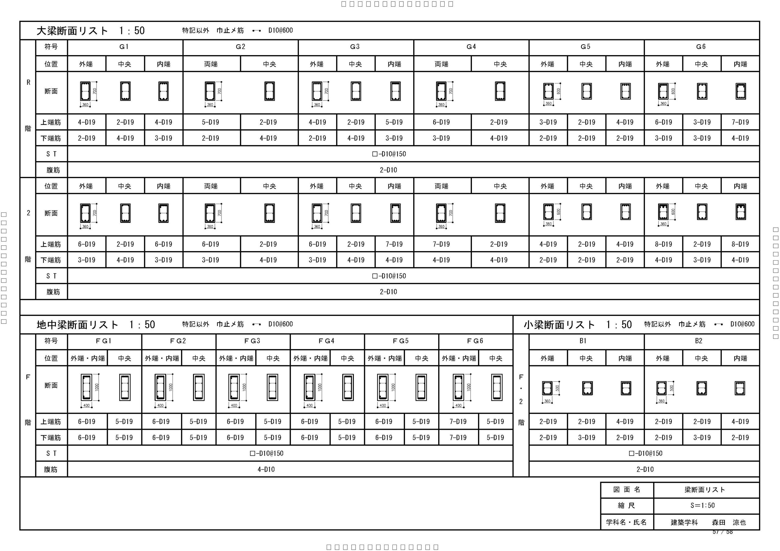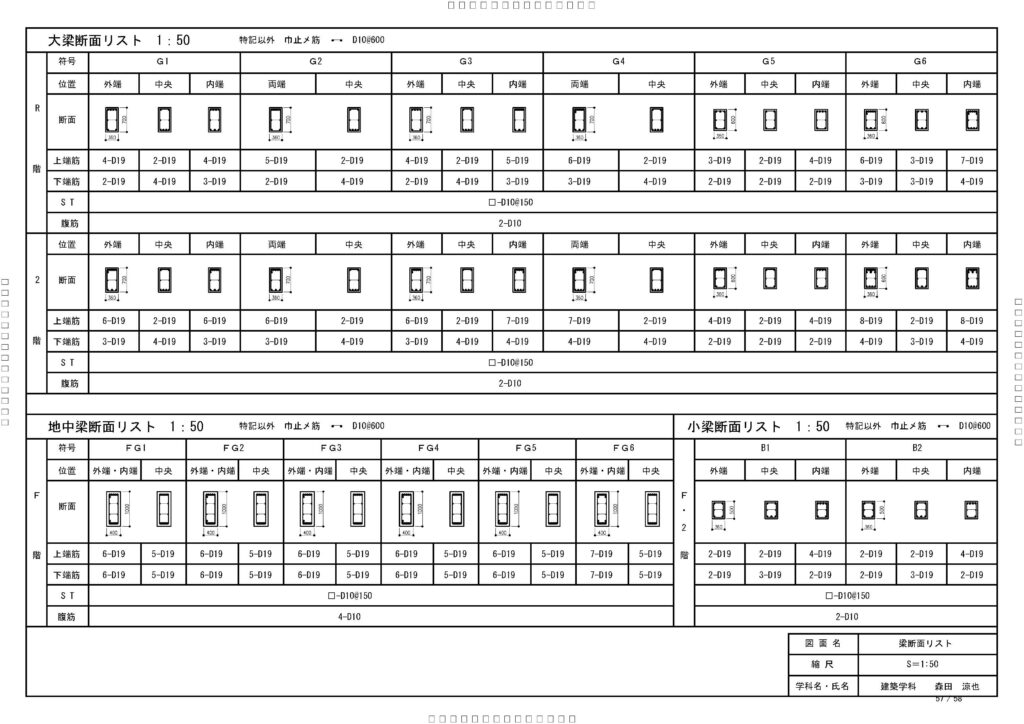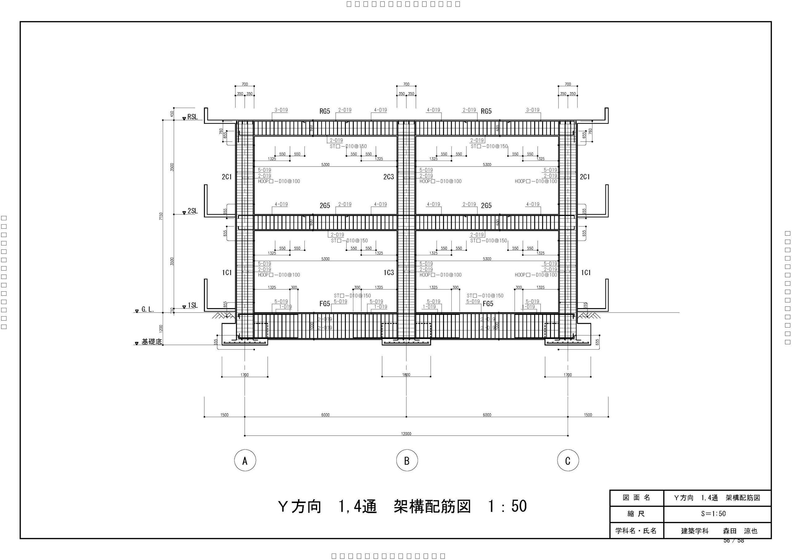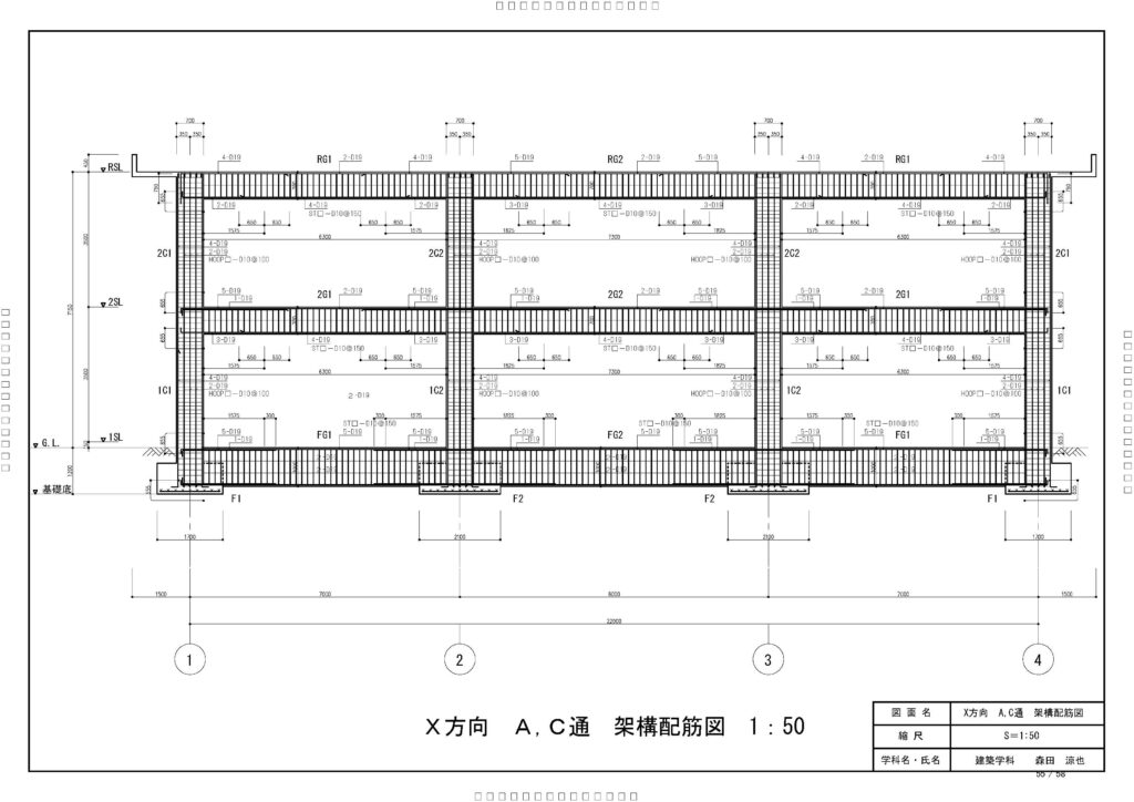森田くんの地道ながらも正確な理解力と計算力が遺憾無く発揮された作品となりました。配筋が織りなす「構造美の世界」をご堪能下さい。<荒木 伸輔>