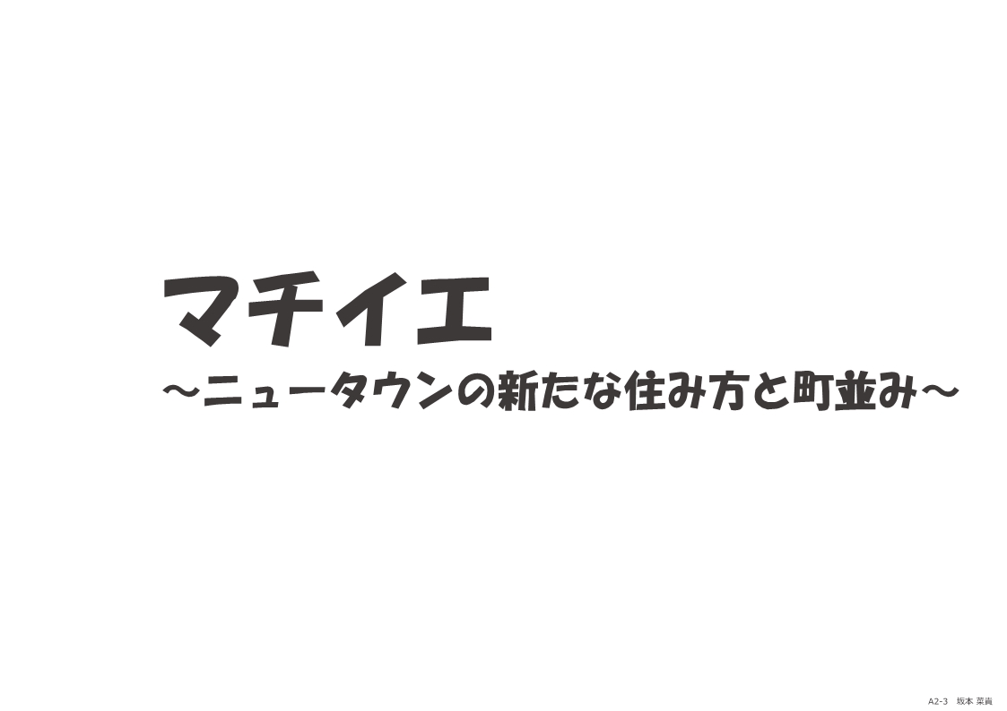 ニュータウンの新しい住み方と町並みについて考えました。今の日本は地域に集まって住んでいるのに他者と関わりがなく、寂しさを感じます。そんな町にコミュニティはどのようにすれば出来やすくなるかを考えました。住戸毎に完結している住む機能を外に出し、町に住むことで他者との共生意識ができる。また、敷地に詰められていた住戸間にゆとりを持たせて町に隙間を作る。そこではそれぞれの物語ができ、豊かなスペースが生まれる町を計画しました。
