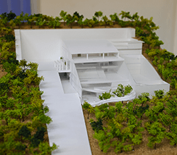 人が生活する中で光や風は必須とされ、うまく採り入れることで心地良い空間にできます。「音」はこれまではあまり採り入れることが考えられなかったが、制作者は「音」に着目し、それがテーマの建築にチャレンジをした。「音」の持つ効果がいろいろあることを調べ、音楽療法を行うためや自然音を活かすための空間づくりの提案をしている。「採音」がこれからの暮らしの中で人の心の豊かさを育てることを想像させる作品と感じた。<岡崎 祐介>