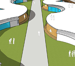 地域の人と人のつながりを活性化させることを目標とした「公園」の新しいあり方を提案しました。現代社会では今、地域のつながりの希薄化が問題となっています。このままでは、私が小さいとき近所の人たちから受けてきた気配りや心遣いのような素晴らしいものがなくなってしまいます。この問題を解消するため、変化の要素として公園をライフスタイルに柔らかく取り組むことを考え計画しました。文化活動、教育、仕事、レジャーなど様々な活動拠点となる空間をつくることで、今までになかった新たな人のつながりのカタチを生み出す場所になっています。
