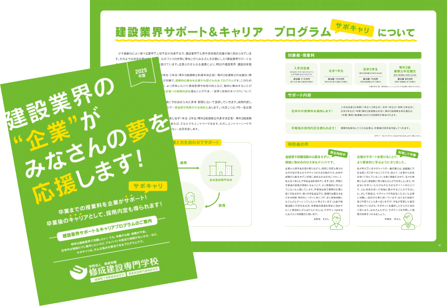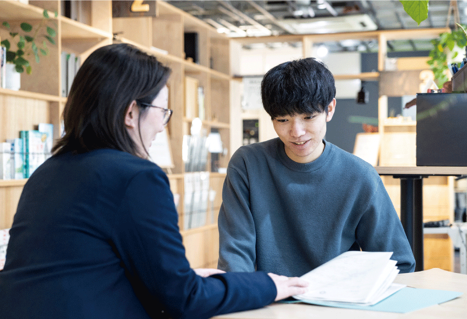 建設業界には、建築・土木・造園の分野ごとにさまざまな職種があります。それぞれの分野を学ぶ学生たち一人ひとりが理想の道に進めるように、就職担当と教員による連携のもと、就職活動を徹底的にサポートしています。