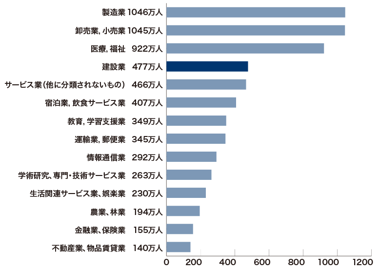 さまざまな建物や橋・道路などを手がけることで、暮らしを⽀え、⽂明を築き上げてきた建設業界。その歴史は古く、いつの時代にも⼈類の暮らしと共に在りました。それは、現代社会でも変わりません。社会基盤を次々に建設していく建設業界は、現在の⽂明的な生活を維持するためには欠かせない存在であり、多くの⽅が就業しています。