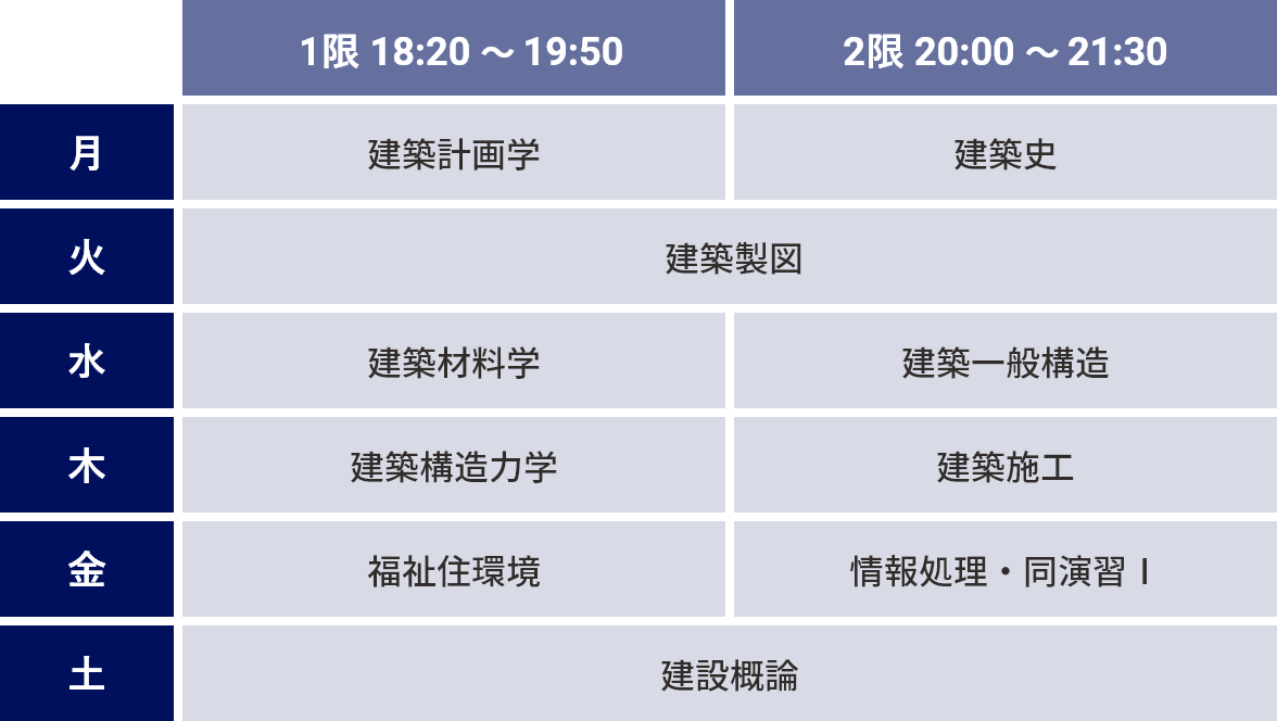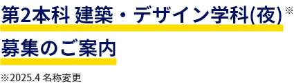 夜間部卒業後、1年間の短期集中型カリキュラムで二級建築士試験合格をめざす、「専科 2級建築士科」へ進学可能。