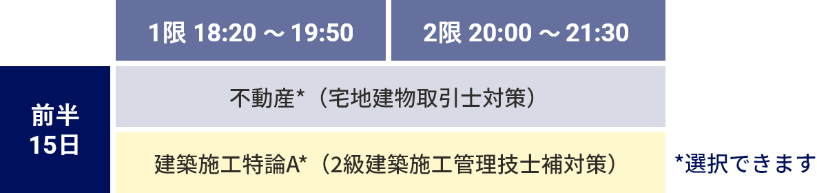 ※1年次に夏期集中講義で建築施工特論A(2級建築施工管理技士対策)と不動産(宅地建物取引士対策)を選択することができます。