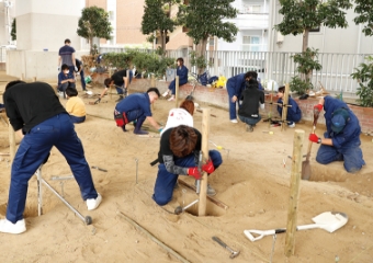 生命力あふれる植物で癒しの場を手がける「造園分野」。修成では、これら3つの分野の建設技術を学ぶことができます。