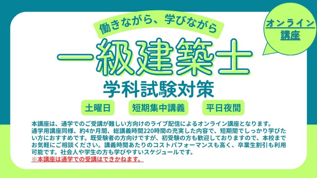 2026年度 一級・二級建築士【学科試験対策講座】募集開始