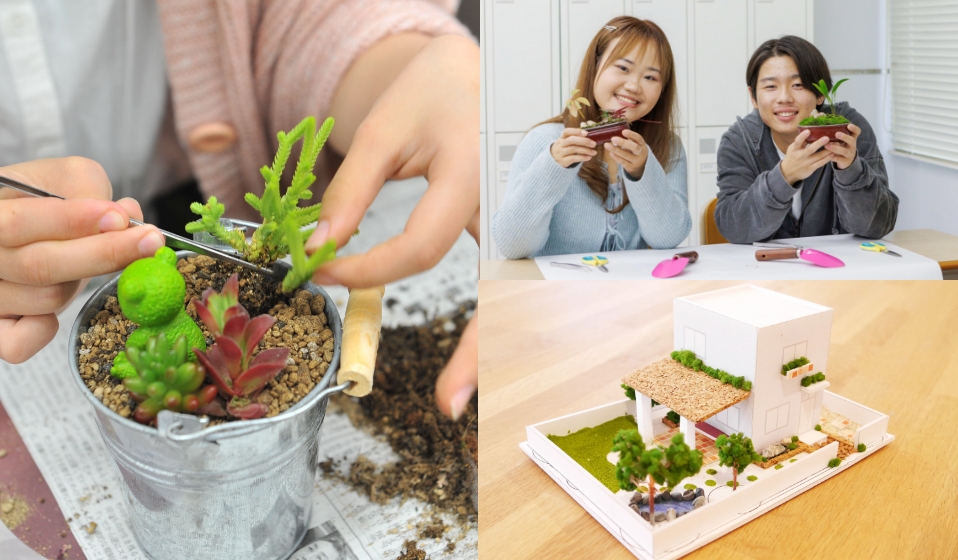 庭の設計やデザイン、草花の寄せ植え、ミニ盆栽など季節に応じた体験をします。普段何気なく見ている庭や公園が、どのようにつくられているのかを学ぶことができます。