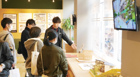 作品展示室の見学や、屋上庭園・免震施設など学校の施設をご案内します!