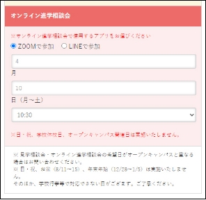 どうすればいいでしょうか?オンライン相談会の参加でAO入試のエントリーが可能になります。