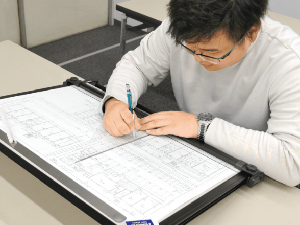 修成には、昼間働いている社会人や大学に通っている学生も、建築が学べる環境があります。