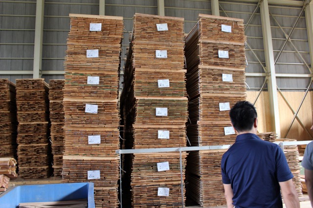 昼食は和食店で奈良の名産である柿の葉寿司をいただき、午後からは吉野町にある吉野中央木材様へお伺いし、県産材の歴史や特徴・用途・加工法について説明をしていただきました。