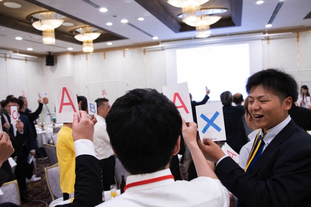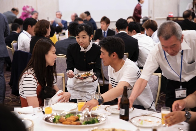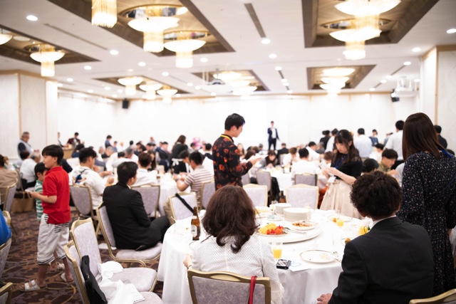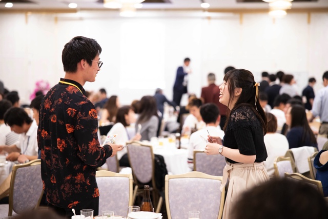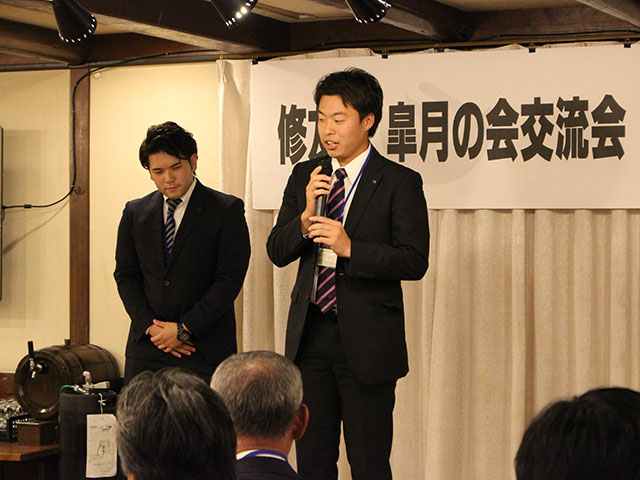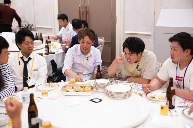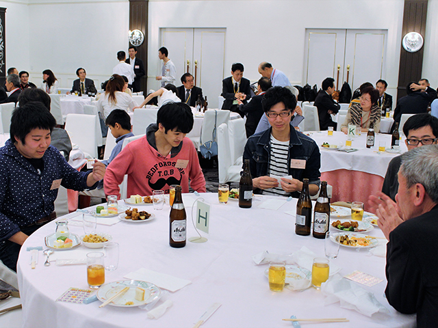 イベントでは、模擬上棟の演出をしていただき、先生方の紹介や、卒業生が突然指名されるドキドキのサプライズスピーチ、一年後の自分に向けて手紙をしたためる「未来のあなたへ」などさまざまな催物が行われ、みなさんお食事を召し上がりながら、終始和やかな様子がうかがえました。