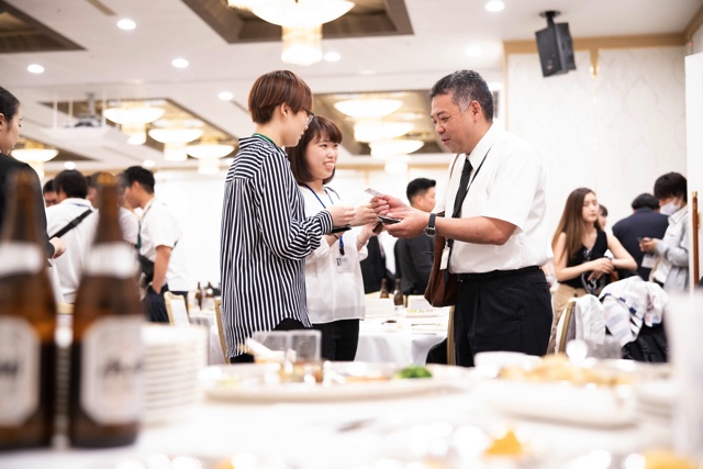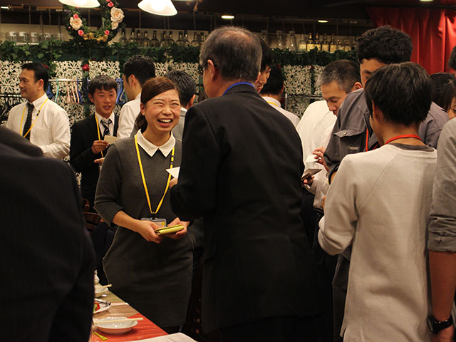 当日は、昭和62年に卒業された方から、今年の3月に卒業された新卒の方まで、教職員・修友会役員を合わせまして79名のご参加をいただき、昨年度の44名よりもかなり多くの卒業生の皆様に参加いただいた結果となりました。名刺交換タイムや1分間自社PR、ビンゴ大会も開催し、会場内はとても盛り上がっておりました。