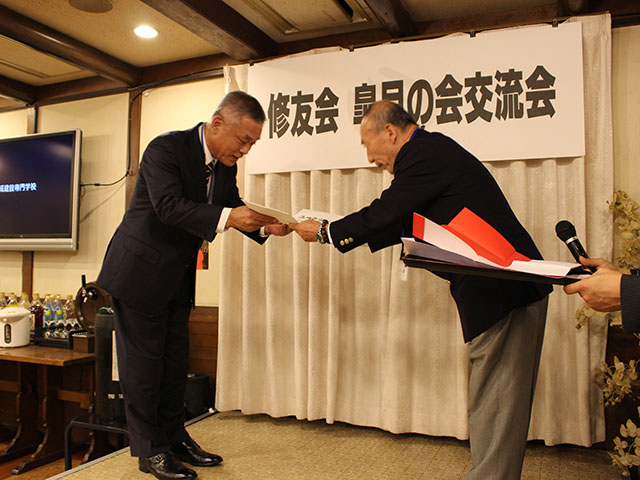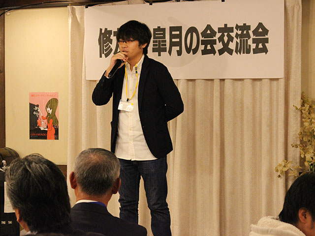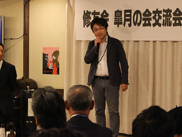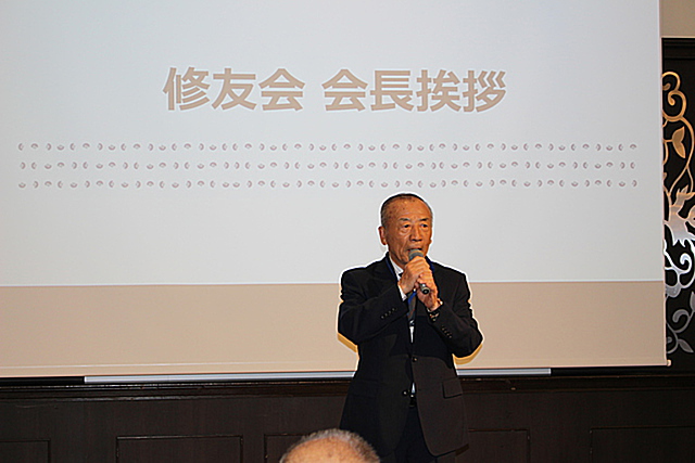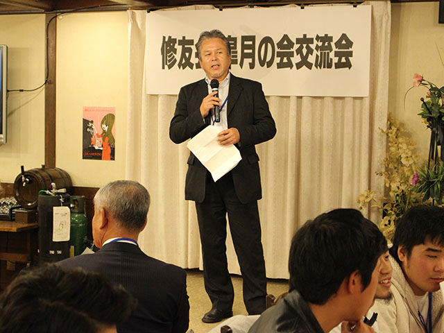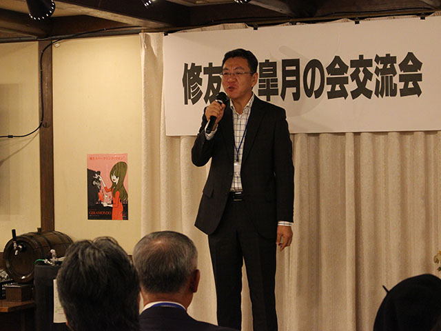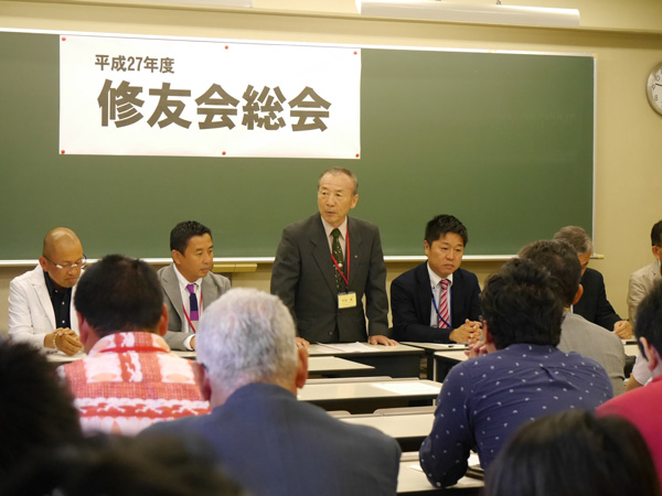 前回の教育成果報告会と同じく、最近の学生の状況、学生募集や進路の状況についてお話をいただきました。学生に対する熱心な思いをお聞きすることができ、非常に有意義な時間となりました。修友会からも1年間の活動報告を行いました。