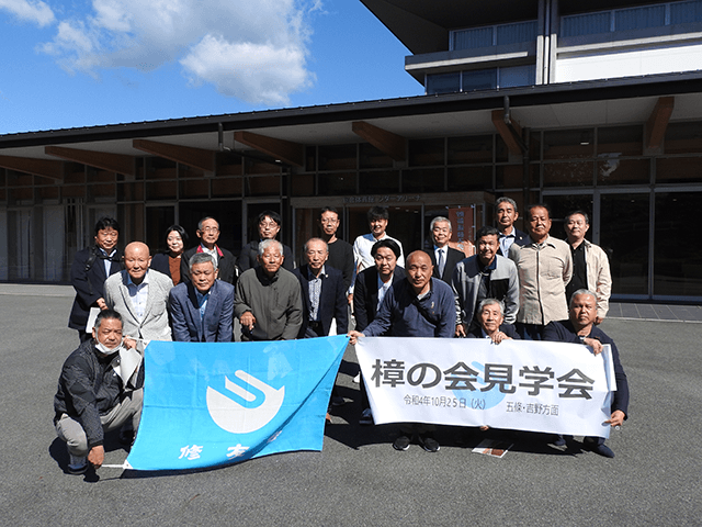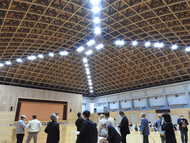当日は、20名の方にご参加いただき、奈良県五條市にある上野公園総合体育館・五條市役所の見学および奈良県吉野町にある吉野中央木材株式会社様を見学しました。