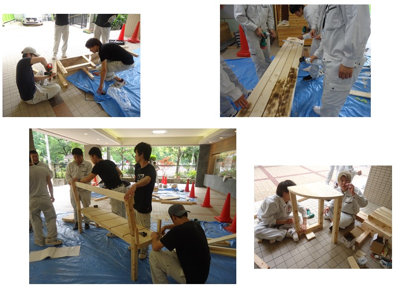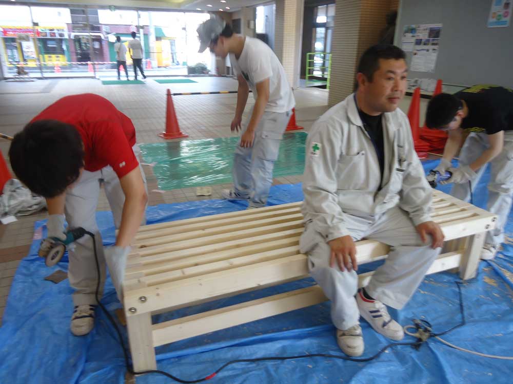 先日、住環境リノベーション学科2年生の実習でベンチ制作が行われました(^_-)-☆