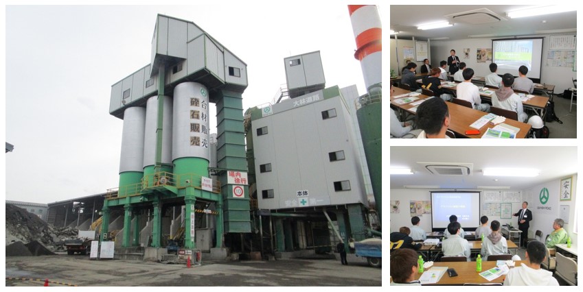 午前中は大林道路(株)の職員の方から、土木業界の話やアスファルト混合物(合材)・アスファルト混合所についての講義を聞きました。