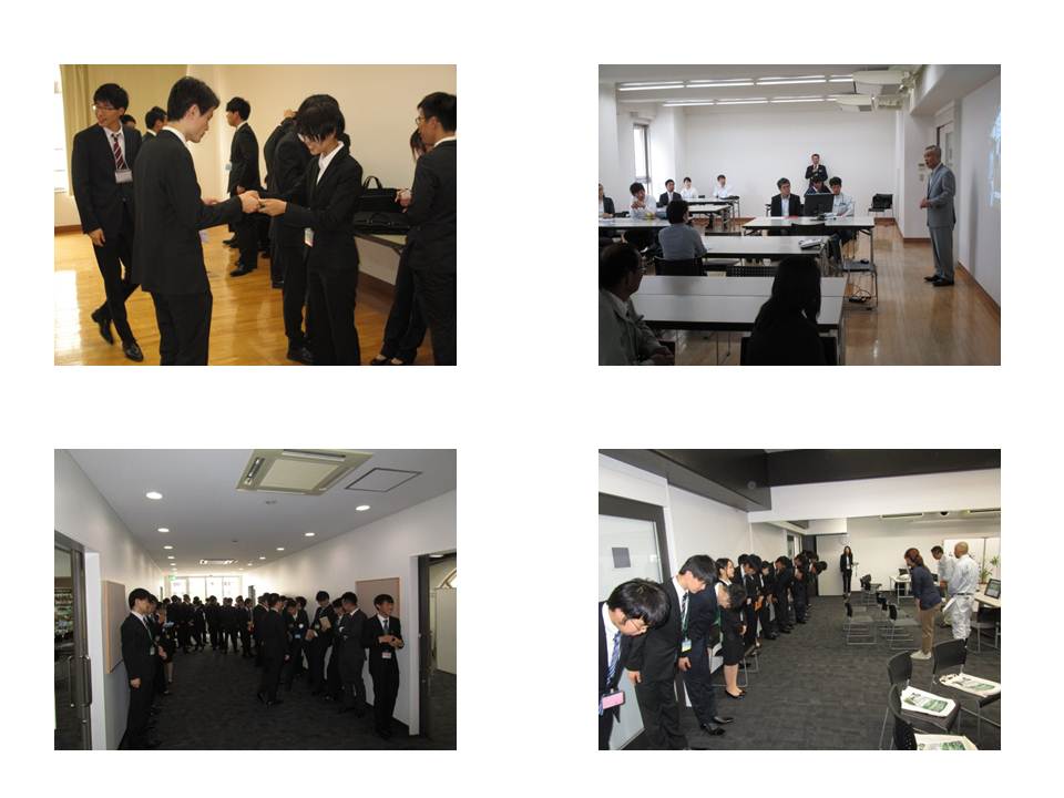 まずは名刺交換、学生も自分の名刺を担当者の方と交換です☆彡