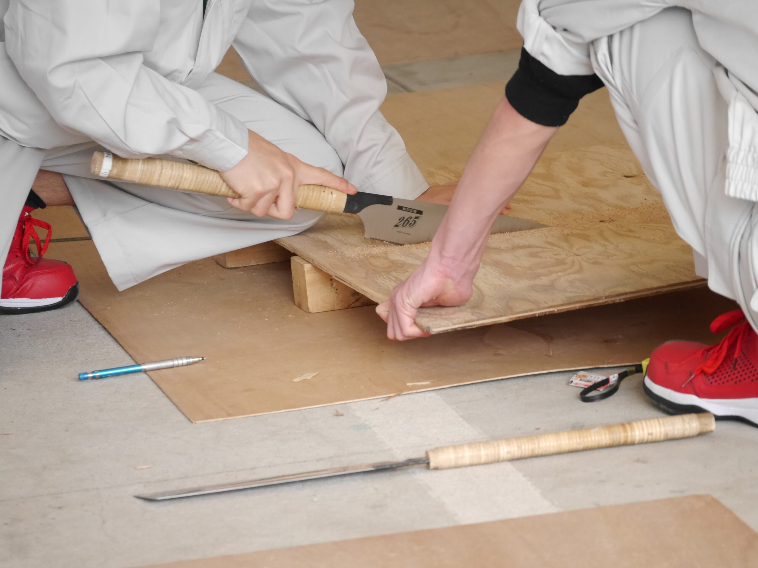 先生の説明を真剣に聞き、道具の使い方に気を付けながら安全第一に、協力し合って作業を進めていきます😊