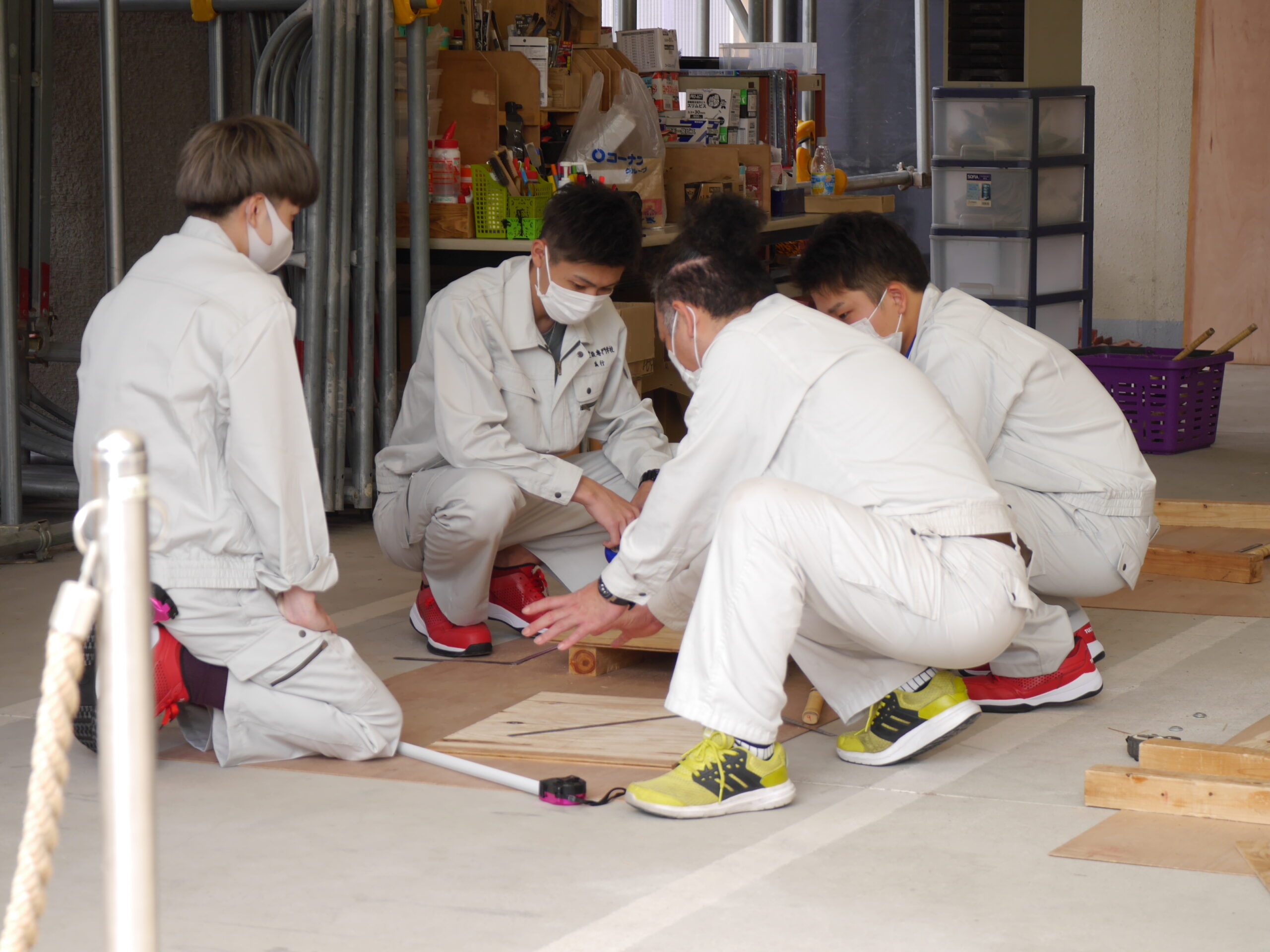 本校では各学科の特色に応じた実習を数多く実施していますが、住環境リノベーション学科の実習では「作業着・ヘルメット・安全靴」を着用して行うことが多いです✨
