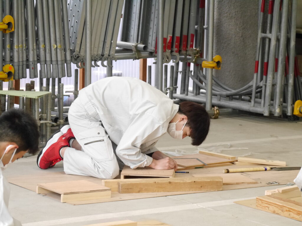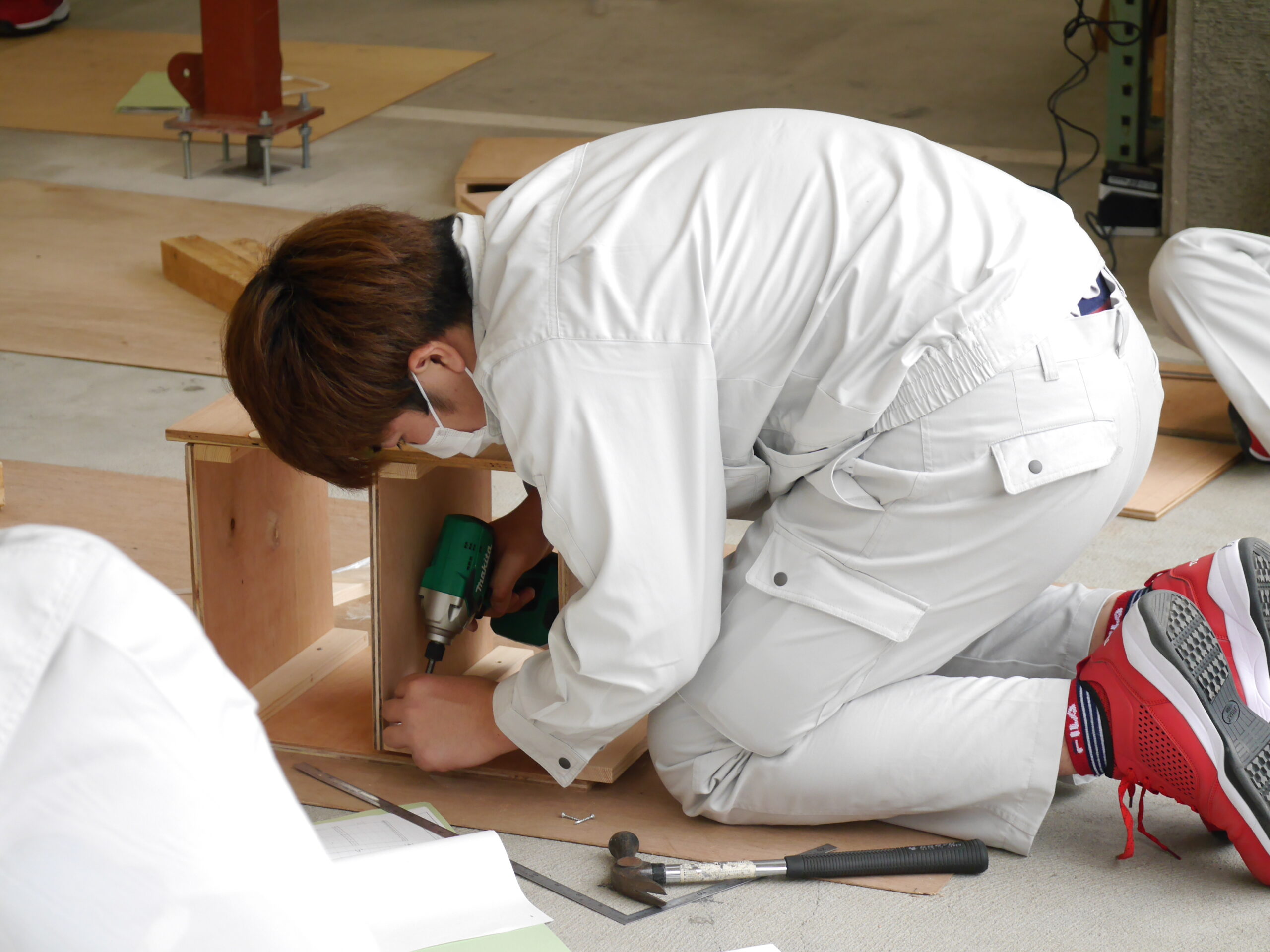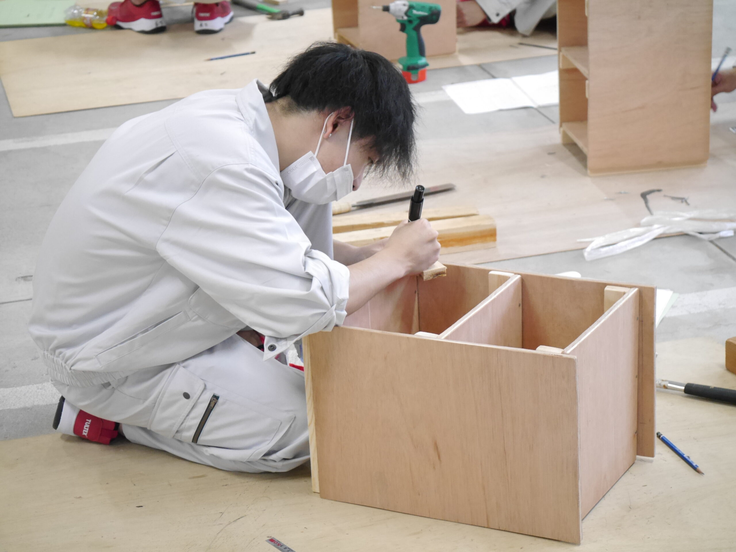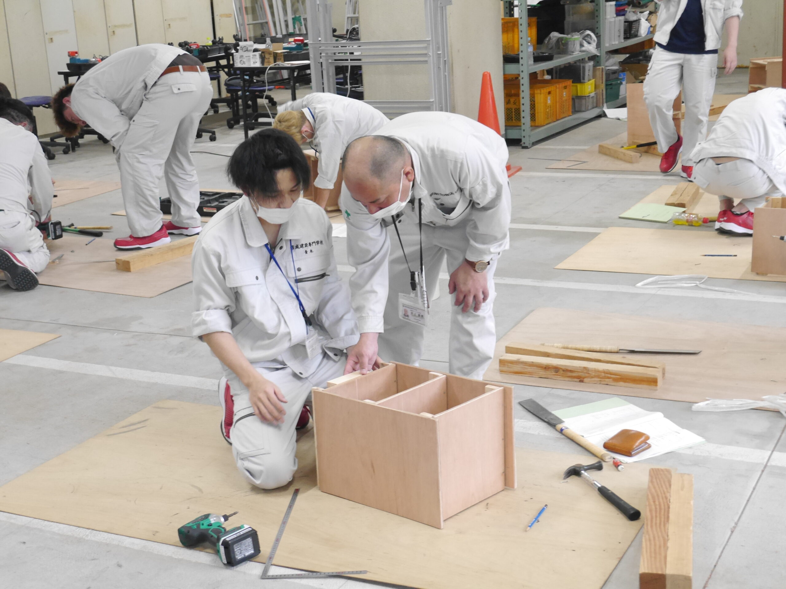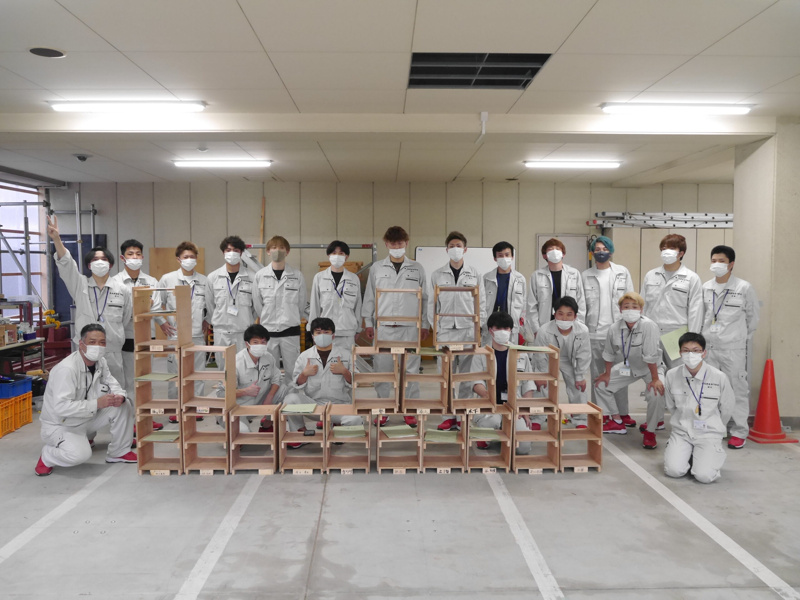 そのため、入学してまず初めに、1年生は自分たちが実習で使うヘルメット・安全靴を保管する箱、名付けて「セーフティーBOX」を実習で製作します!!