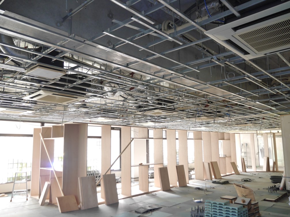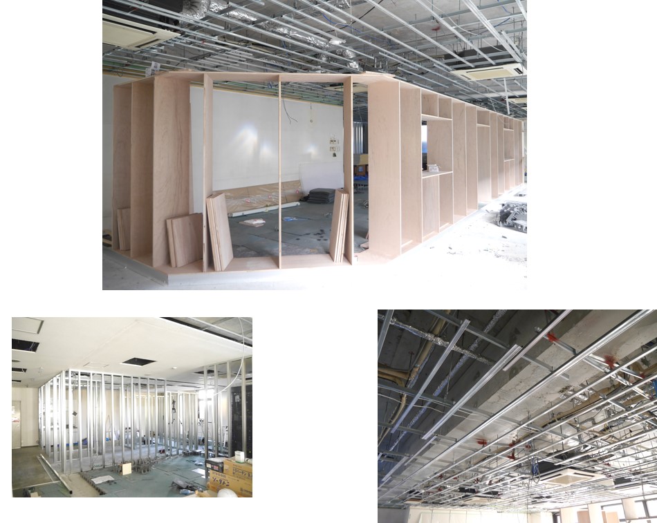 職人さんたちの手によって、天井の板を外したり、床材をはがしたり、新しい事務局の間取りにあわせた壁をつくるための鉄筋が組まれたり、作業がどんどん進んでいきます😳✨