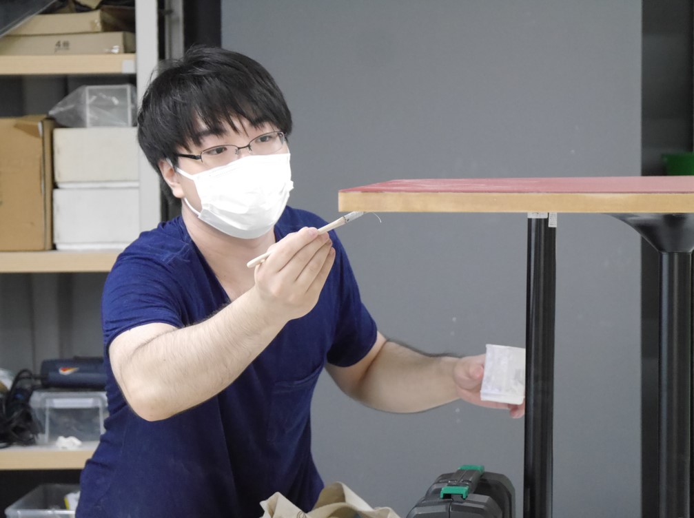 デスクの製作や棚の仕上げなど分担して進めていきます😉