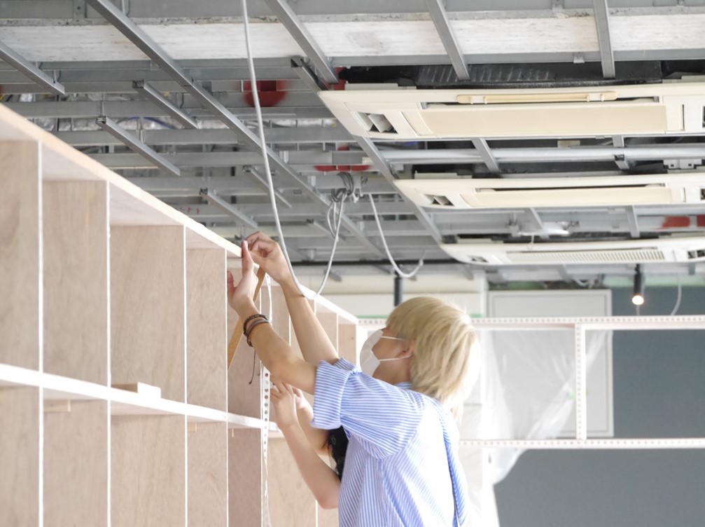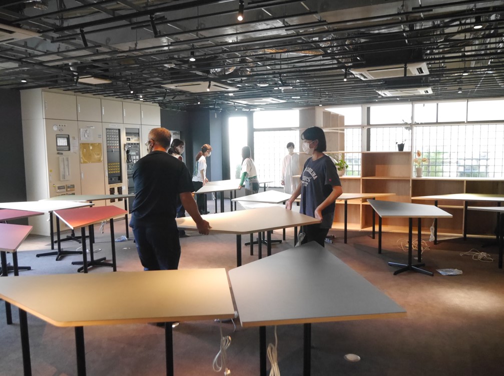 毎日一生懸命学生たちが新しい事務局完成へ向けて奮闘している姿を近くで見ていたので、みんながつくってくれたデスクで作業をして、みんなのデザインしたインテリアやアイデアのつまった空間でお仕事を出来るのがとっても嬉しいです✌✨✨