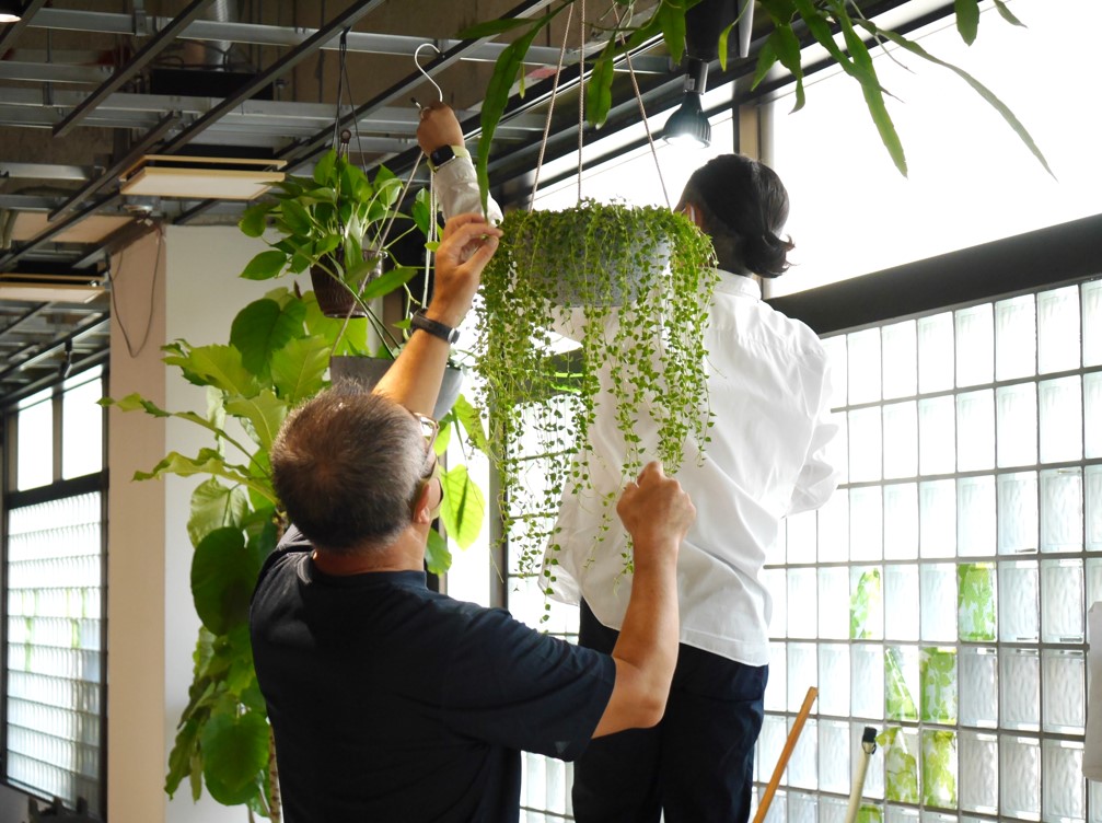 選んだ植栽や、完成したデスクや家具を運び込んで…