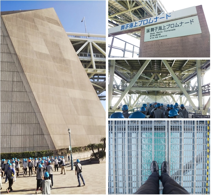 ここからは通常入れないところとなり、補剛桁(橋の横ずれなどを防止するもの)の並ぶ管理用通路を約1km歩いていきます。