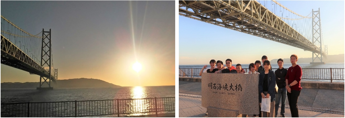 11月下旬とあって帰るころには夕暮れです。最後には夕日に照らされた明石海峡大橋を見ることができました。