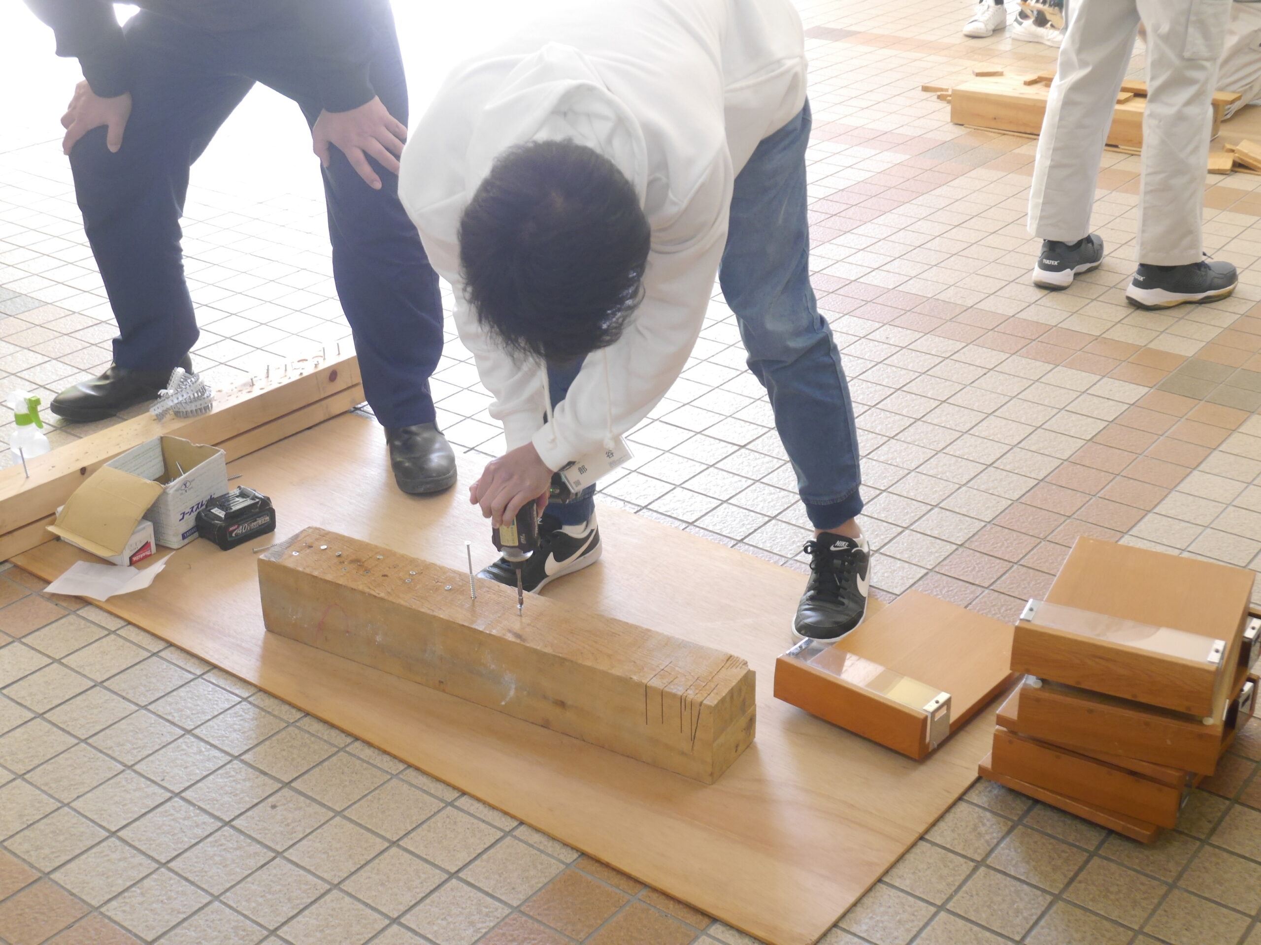 ①のインパクトドライバでは、短いビスと長い90㎜のビスの締付けを体験。