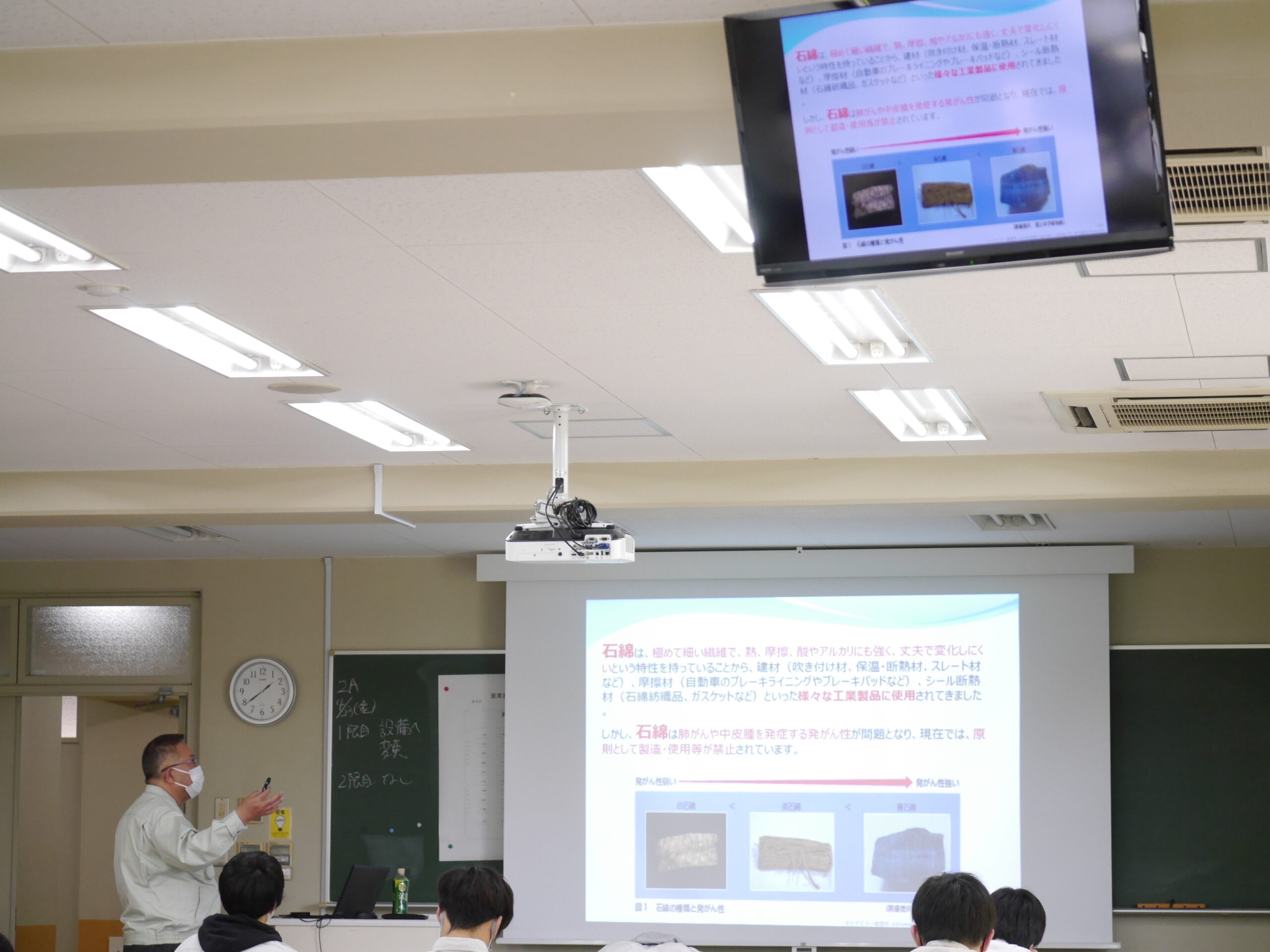 続いて、2年生が参加したキャタピラー教習所様にお越しいただいて2日間連続で実施した「職長・安全衛生責任者教育」の座学です( ◜◡◝ )