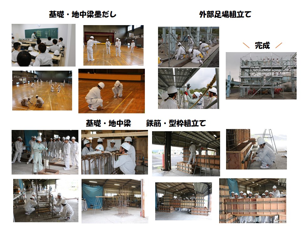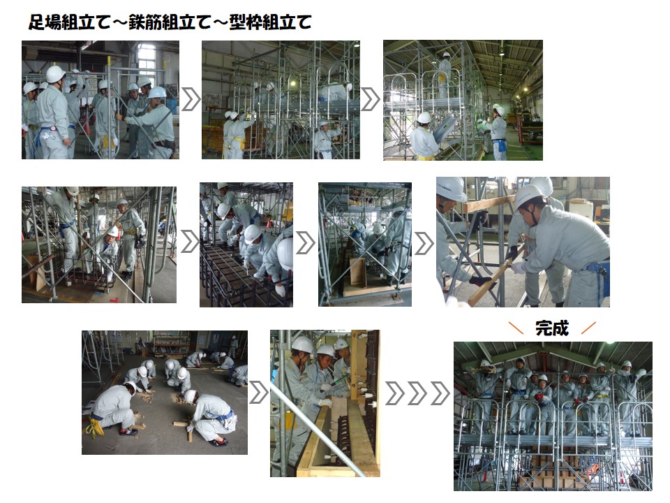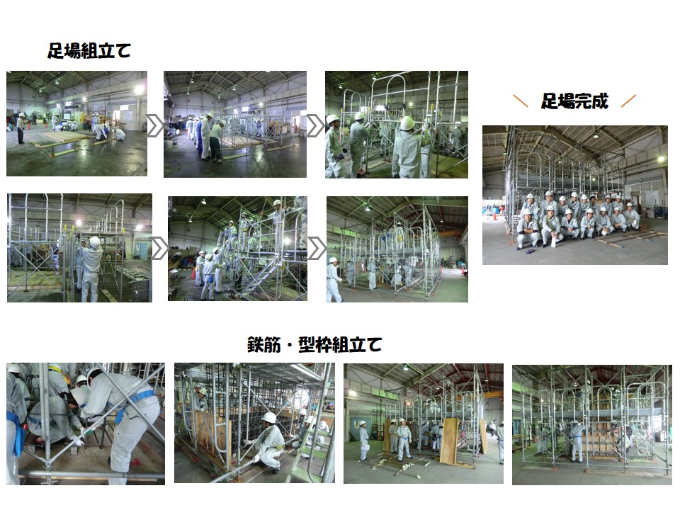 足場組立て、鉄筋組立て、型枠組立てを実施。