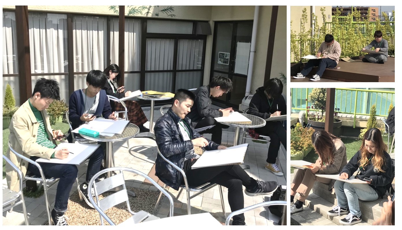 校舎の屋上庭園で「スケッチ」を行いました!!